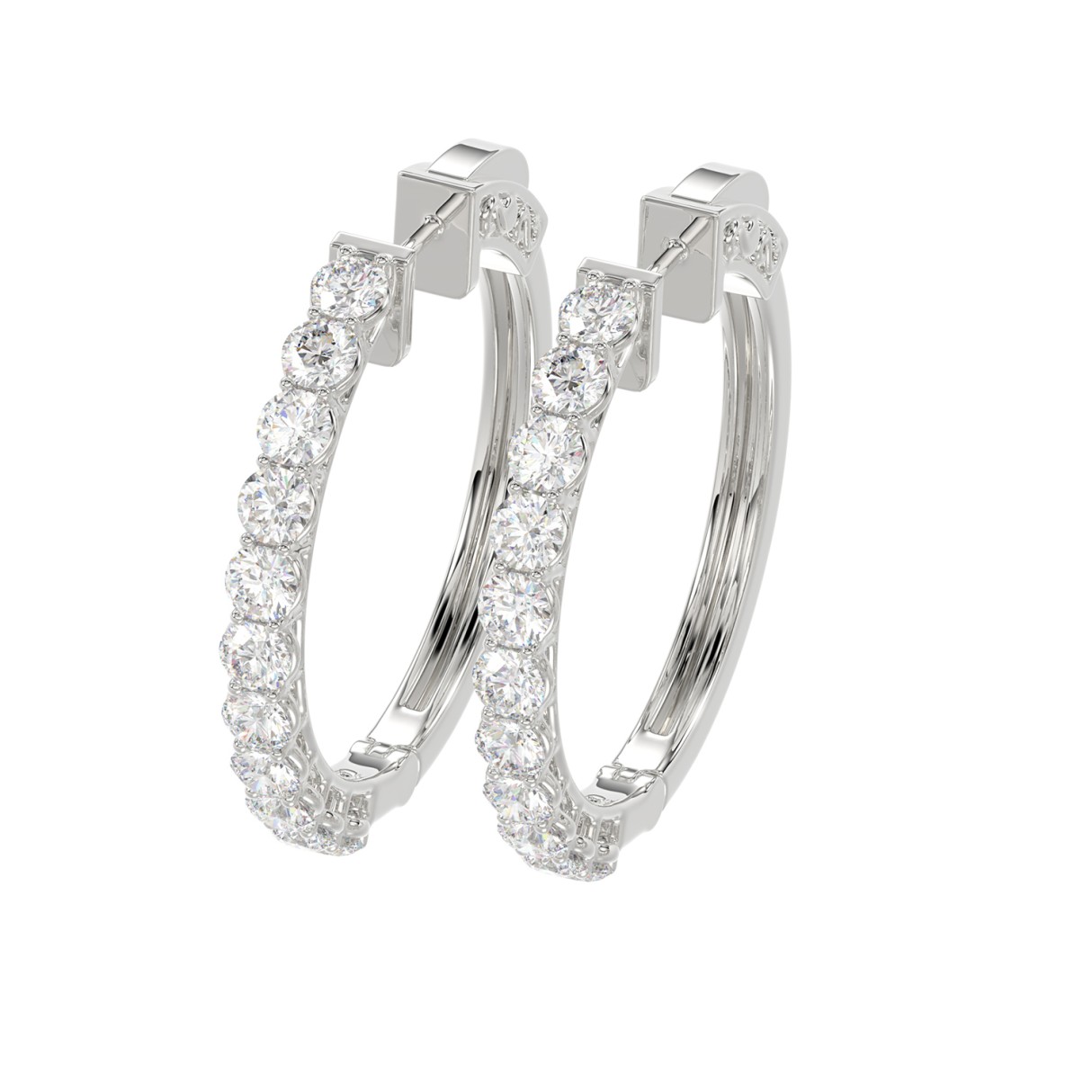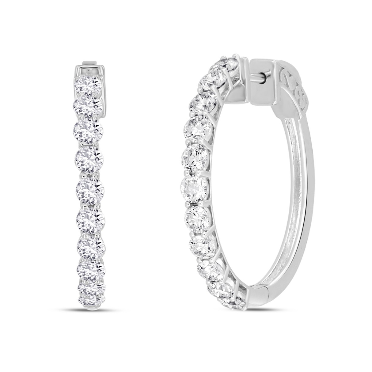 LADIES HOOP EARRINGS 2CT ROUND DIAMOND 14K WHITE GOLD