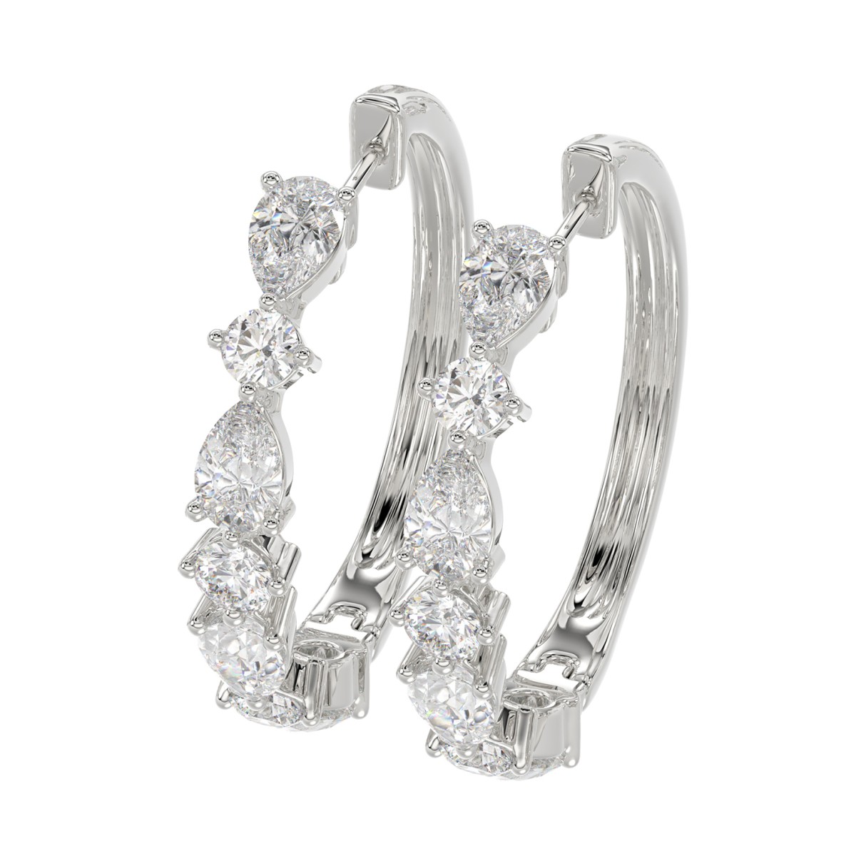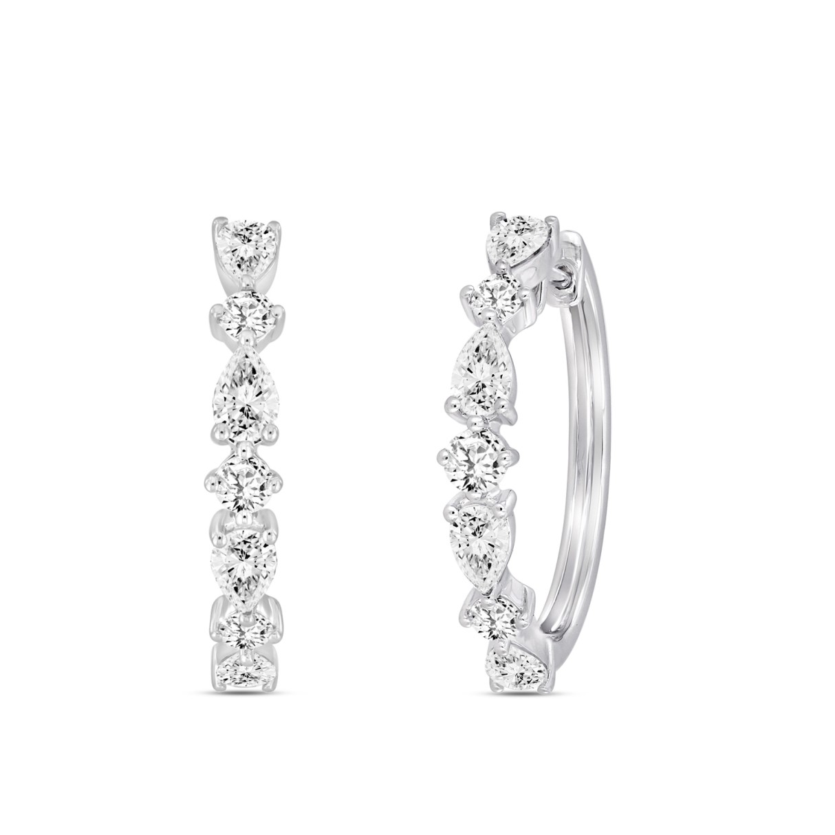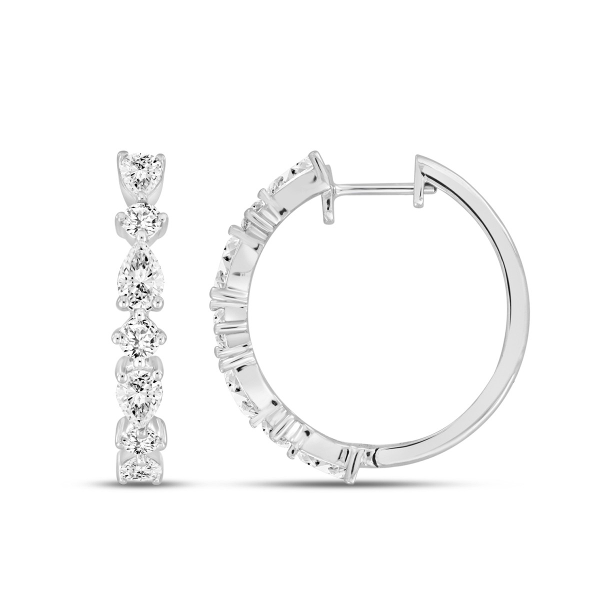 LADIES HOOP EARRINGS 2CT ROUND/PEAR DIAMOND 14K WHITE GOLD
