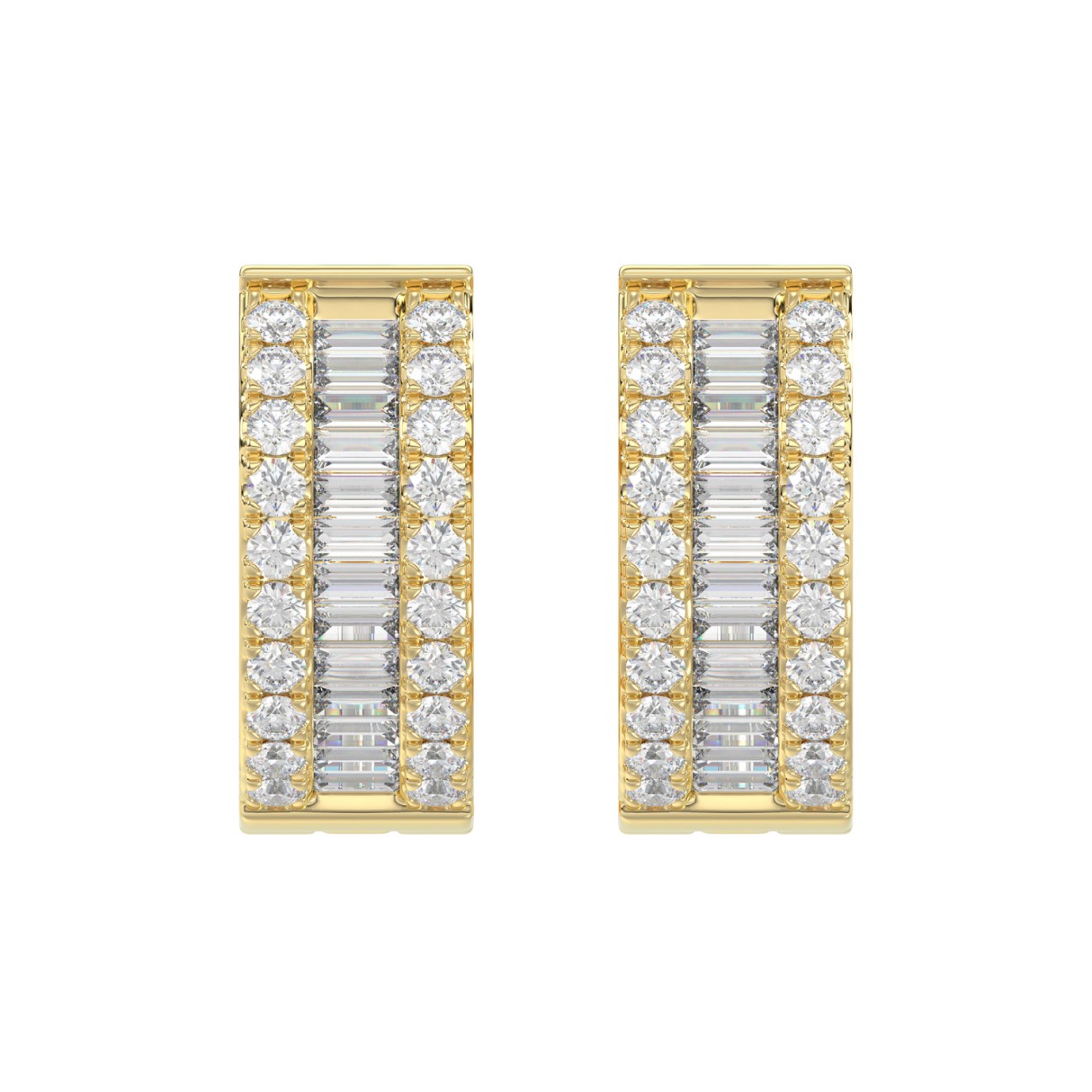 LADIES HOOP EARRINGS 3/8CT ROUND/BAGUETTE DIAMOND 14K YELLOW GOLD