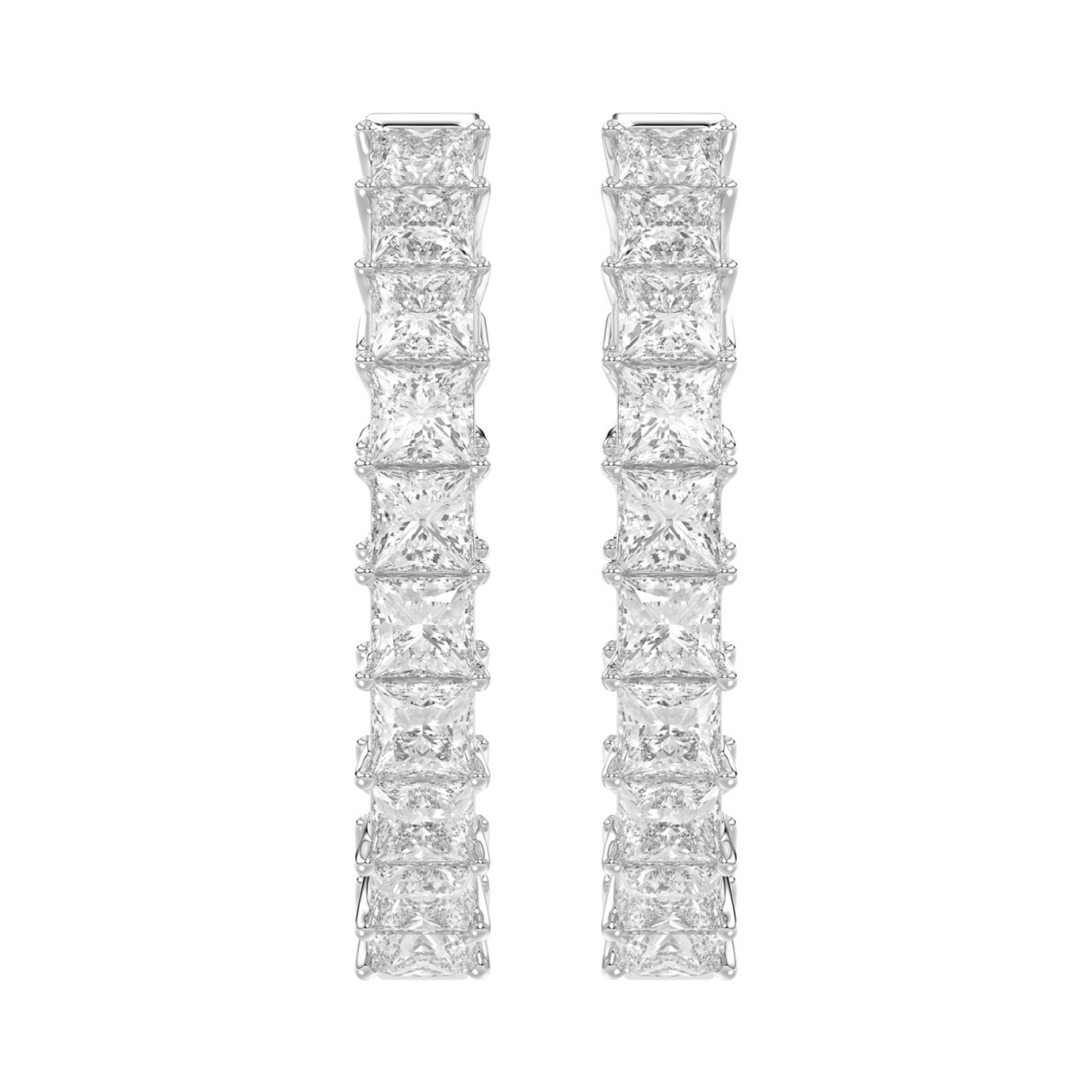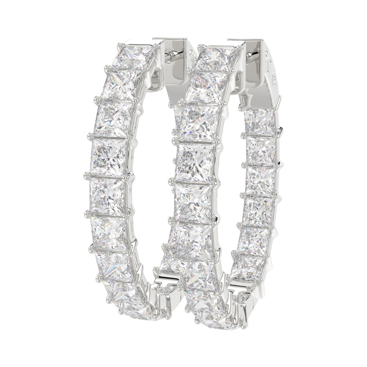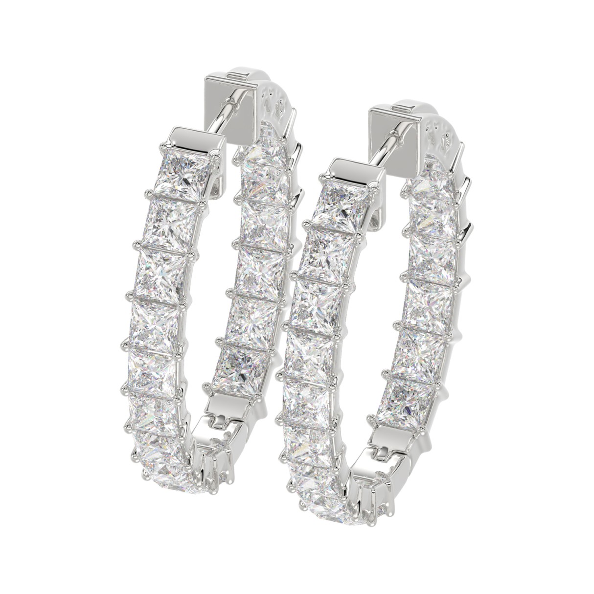 LADIES HOOP EARRINGS 5CT PRINCESS DIAMOND 14K WHITE GOLD