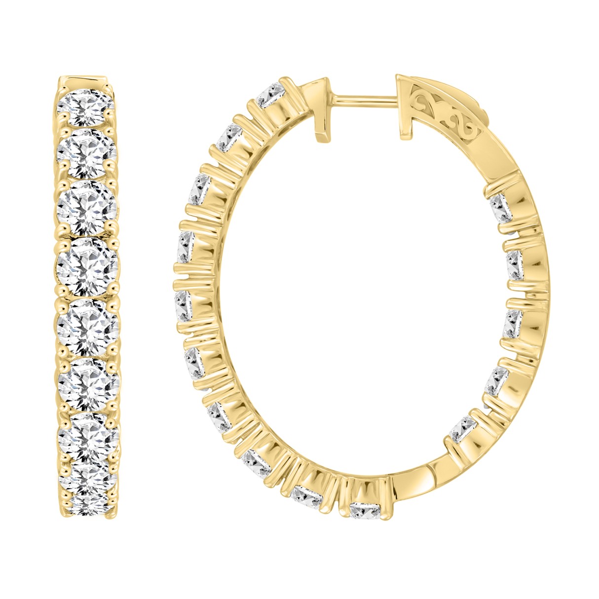 LADIES HOOP EARRINGS 1.25CT ROUND DIAMOND 14K YELLOW GOLD
