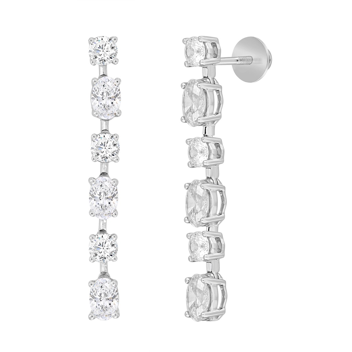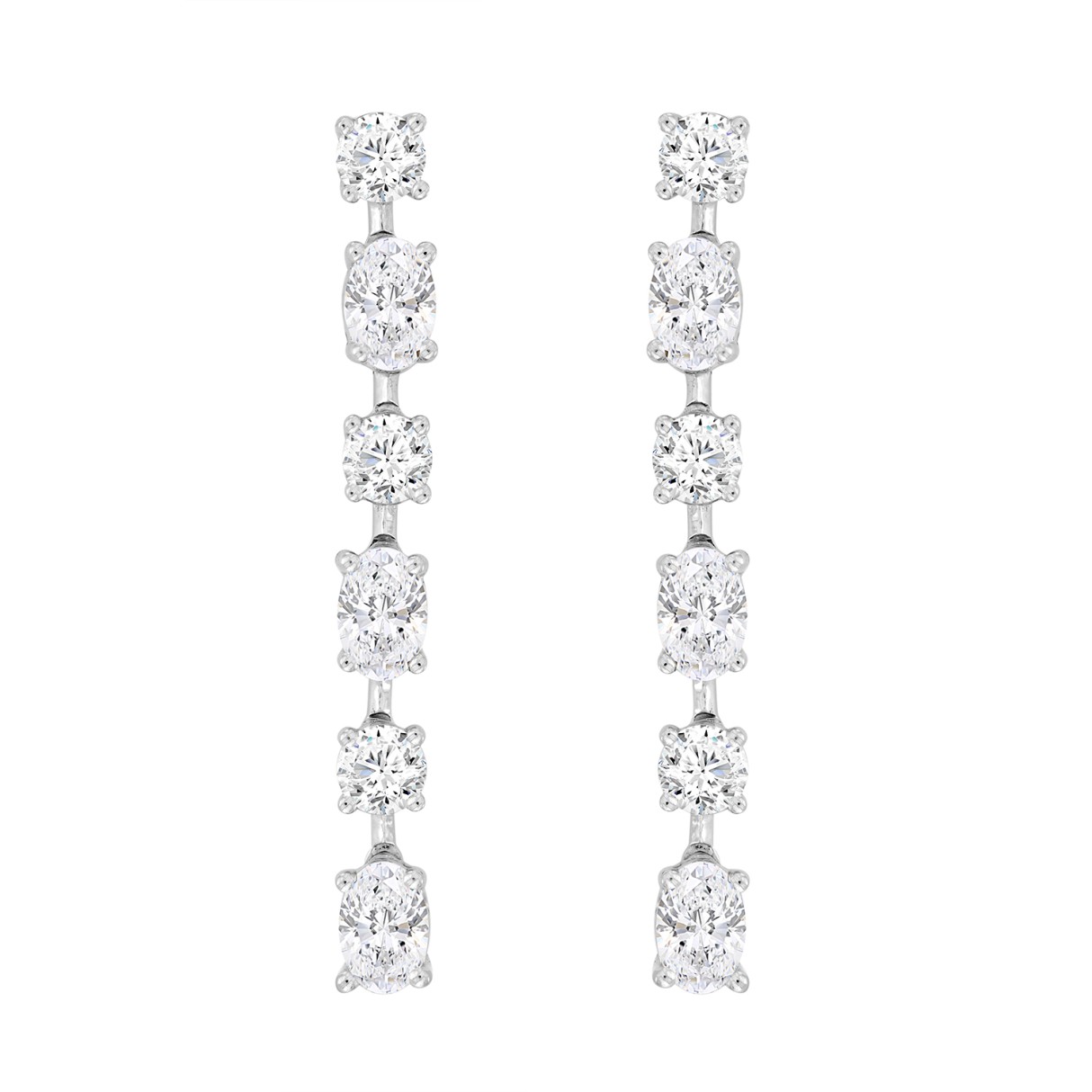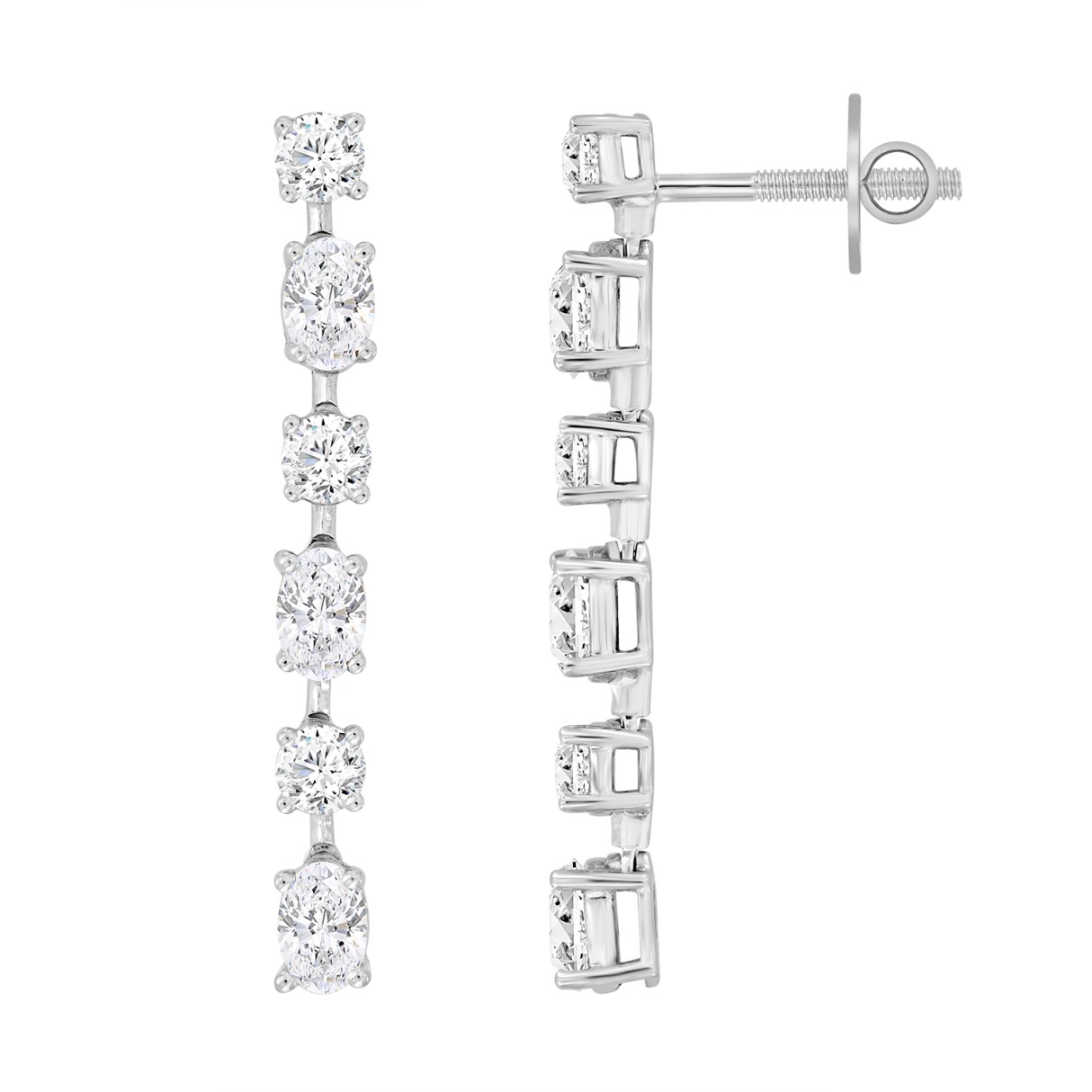 LADIES LINEAR EARRINGS 4 1/2CT OVAL/ROUND DIAMOND 14K WHITE GOLD