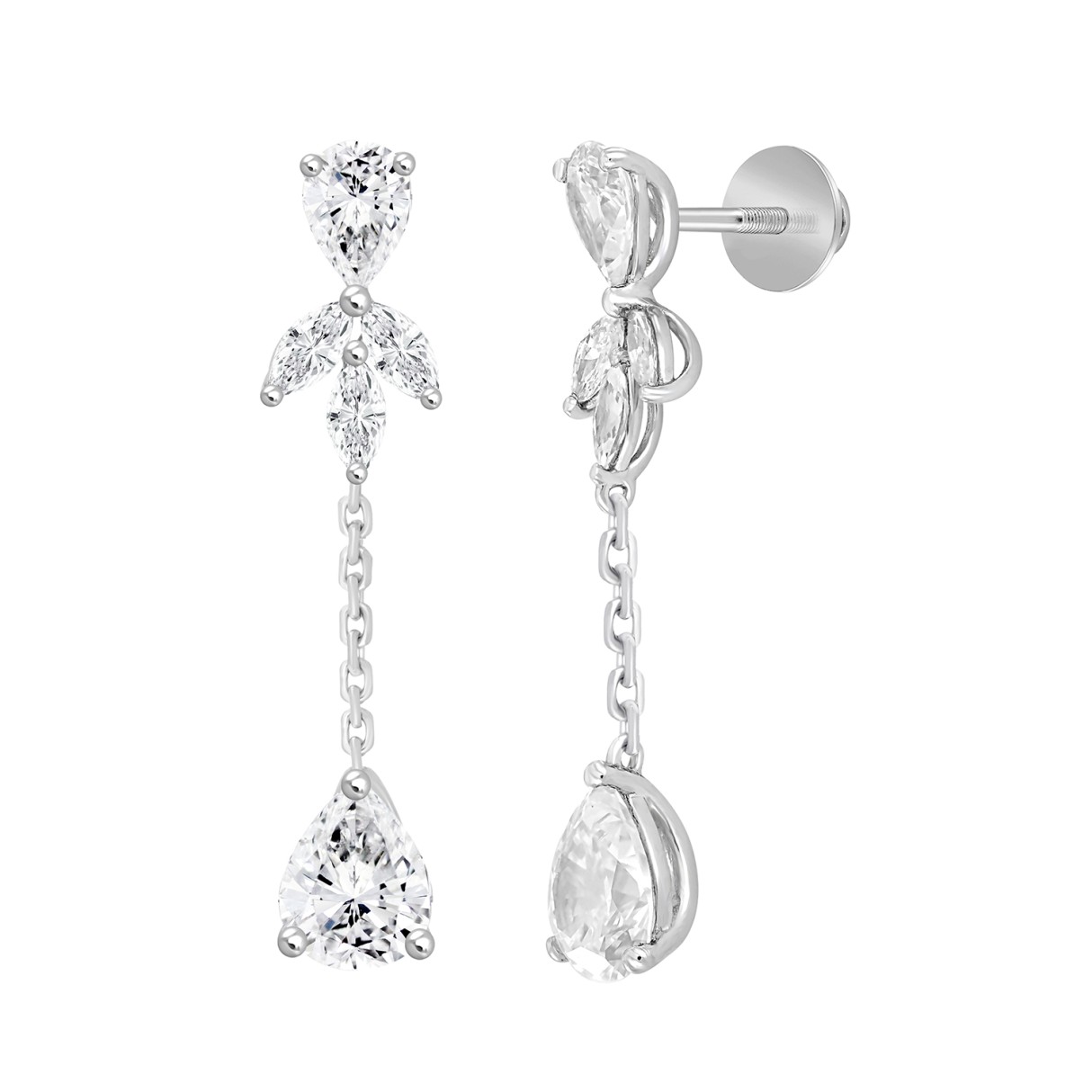 LADIES LINEAR EARRINGS 6CT MARQUISE/PEAR DIAMOND 14K WHITE GOLD