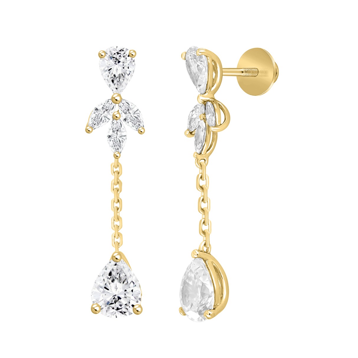 LADIES LINEAR EARRINGS 6CT MARQUISE/PEAR DIAMOND 14K YELLOW GOLD