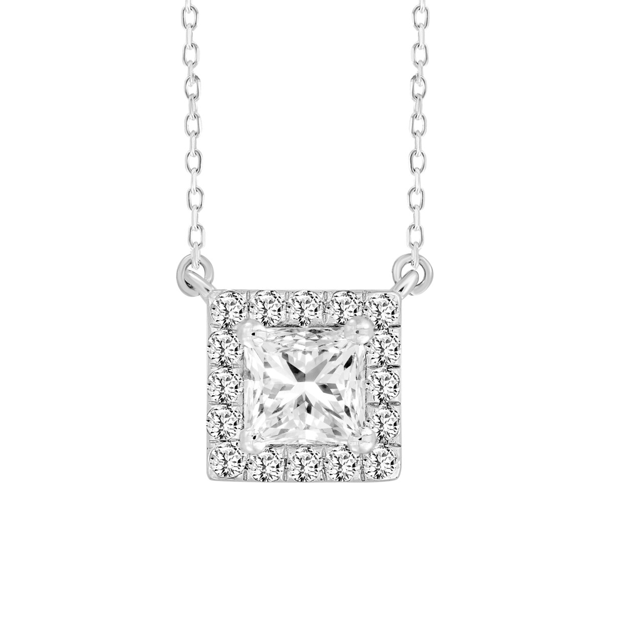 LADIES NECKLACE 1/2CT ROUND/PRINCESS DIAMOND 18K WHITE GOLD (CENTER STONE PRINCESS DIAMOND 1/3CT)