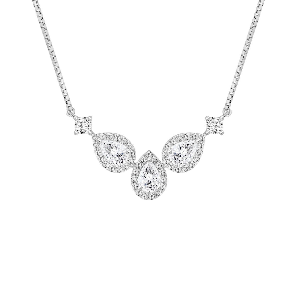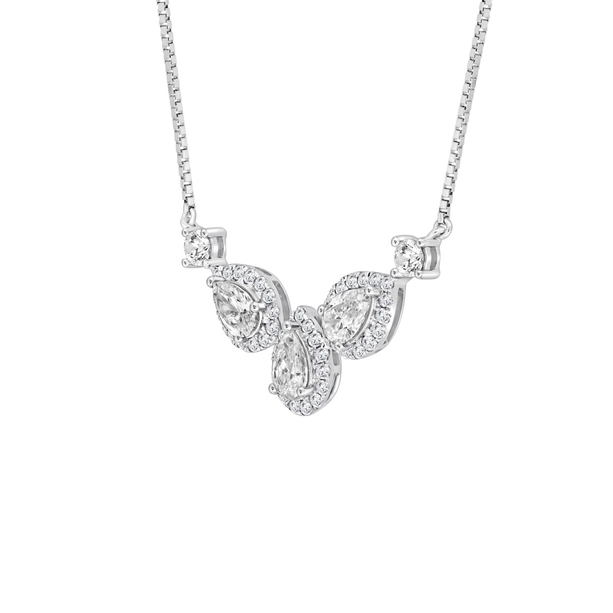 LADIES NECKLACE 3 1/2CT ROUND/PEAR DIAMOND 14K WHITE GOLD