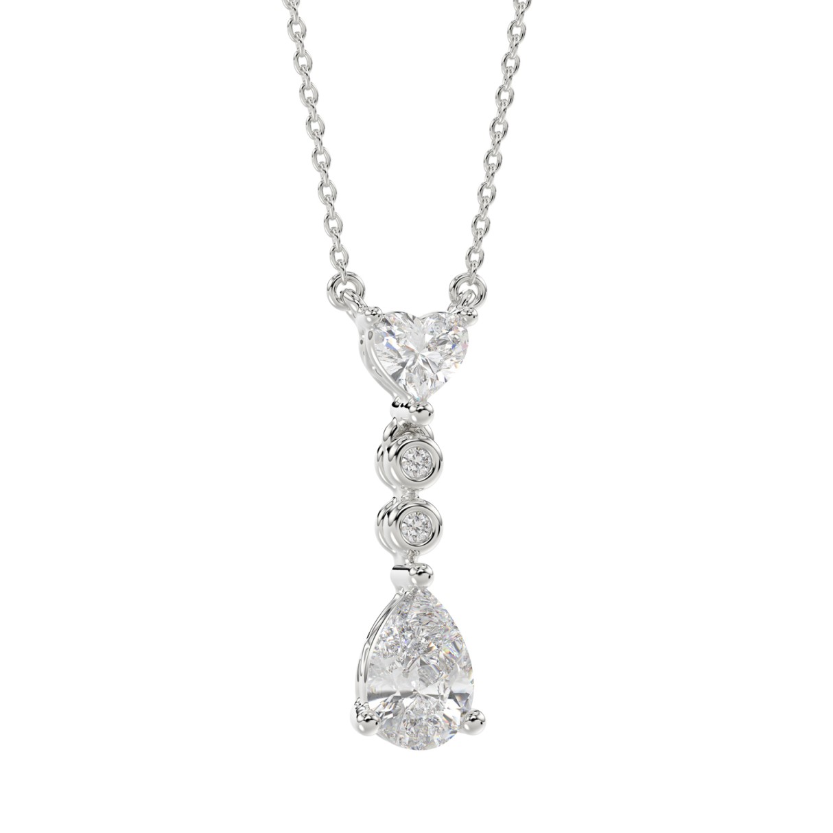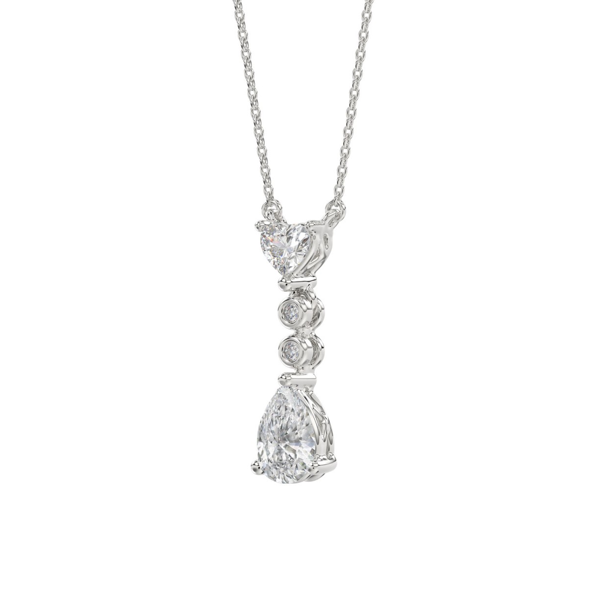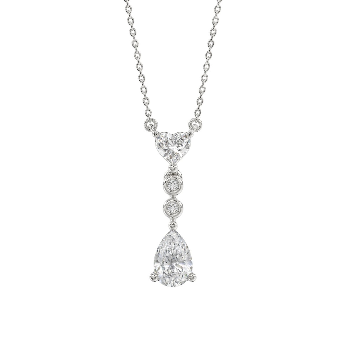 LADIES NECKLACE 3/4CT ROUND/PEAR/HEART DIAMOND 14K WHITE GOLD WITH CHAIN