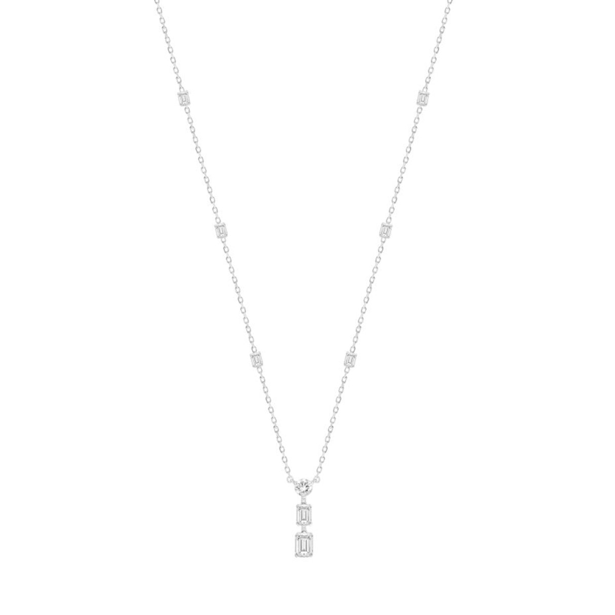 LADIES NECKLACE 4 1/4CT ROUND/EMERALD DIAMOND 14K WHITE GOLD