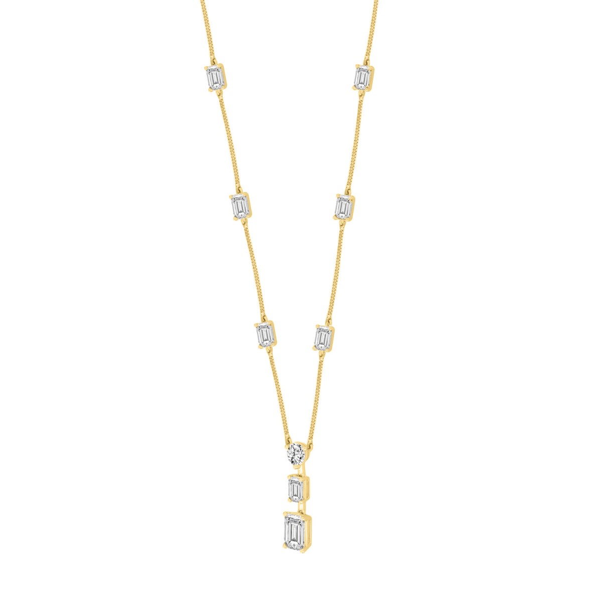 LADIES NECKLACE 7 1/2CT ROUND/EMERALD DIAMOND 14K YELLOW GOLD