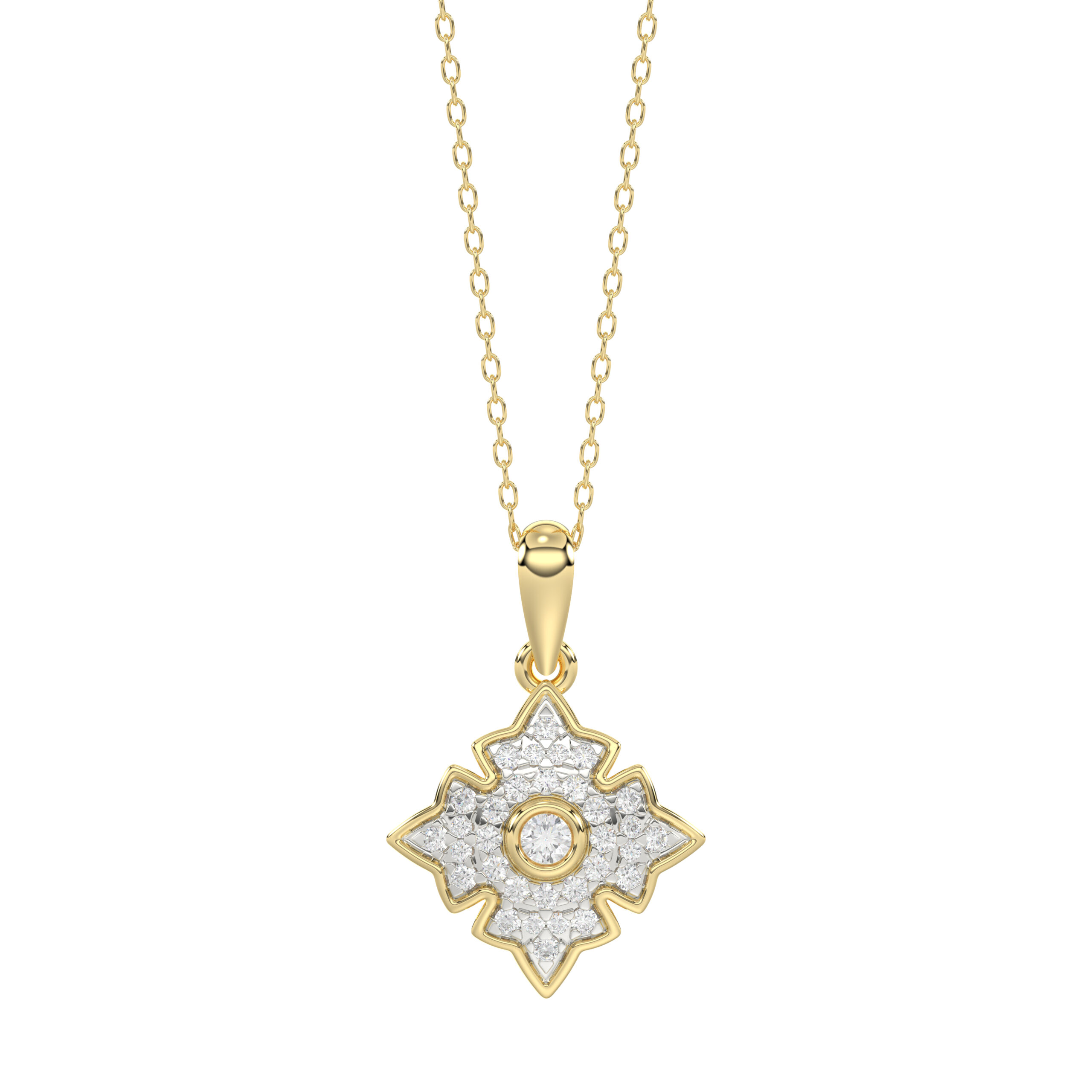 LADIES PENDANT WITH CHAIN 0.25CT ROUND DIAMOND 14K YELLOW GOLD