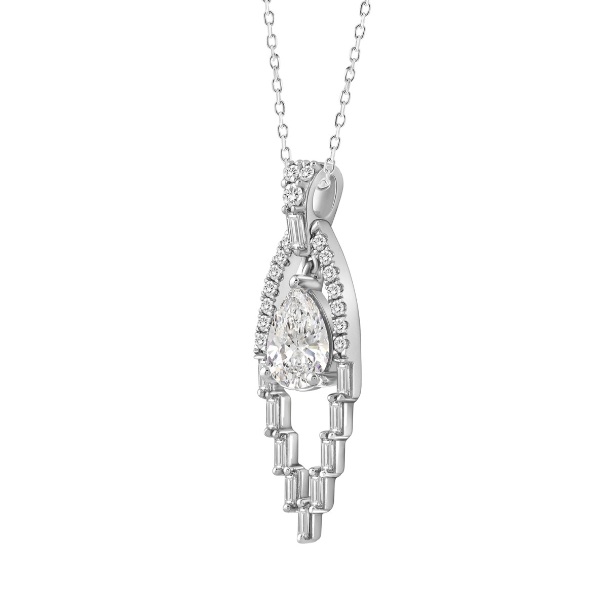 LADIES PENDANT 1 1/2CT ROUND/BAGUETTE/PEAR DIAMOND 14K WHITE GOLD