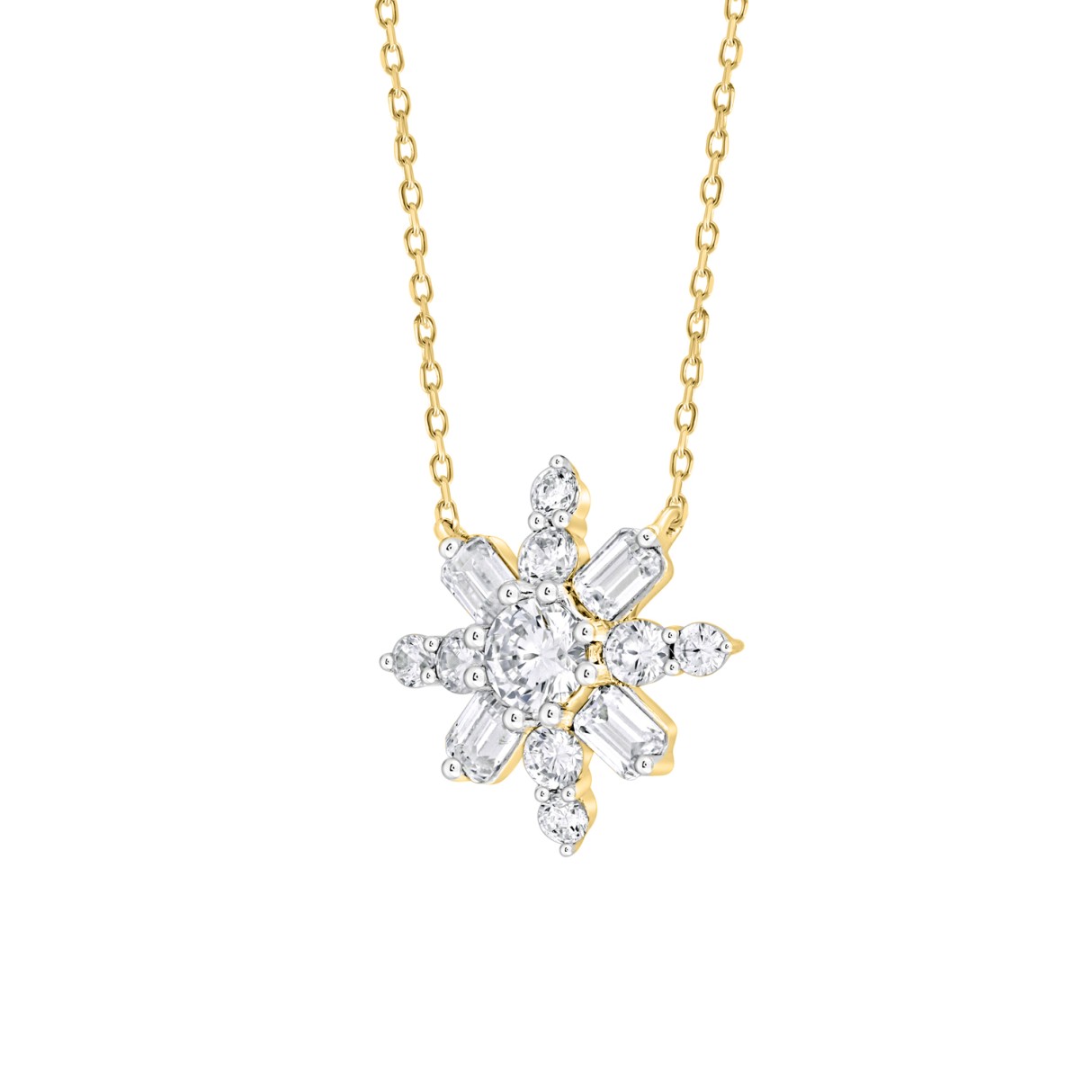 LADIES PENDANT 1 1/2CT ROUND/EMERALD DIAMOND 14K YELLOW GOLD WITH CHAIN