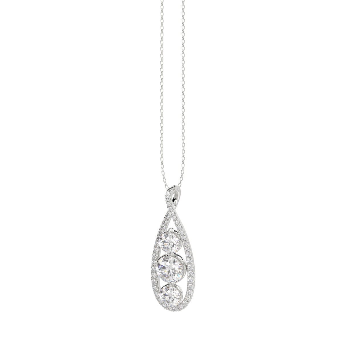 LADIES PENDANT 1 1/2CT ROUND/PEAR DIAMOND 14K WHITE GOLD