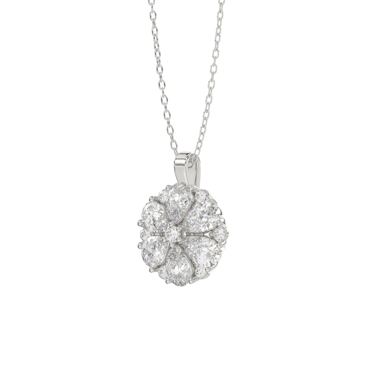 LADIES NECKLACE 16CT ROUND/PEAR DIAMOND 14K WHITE GOLD