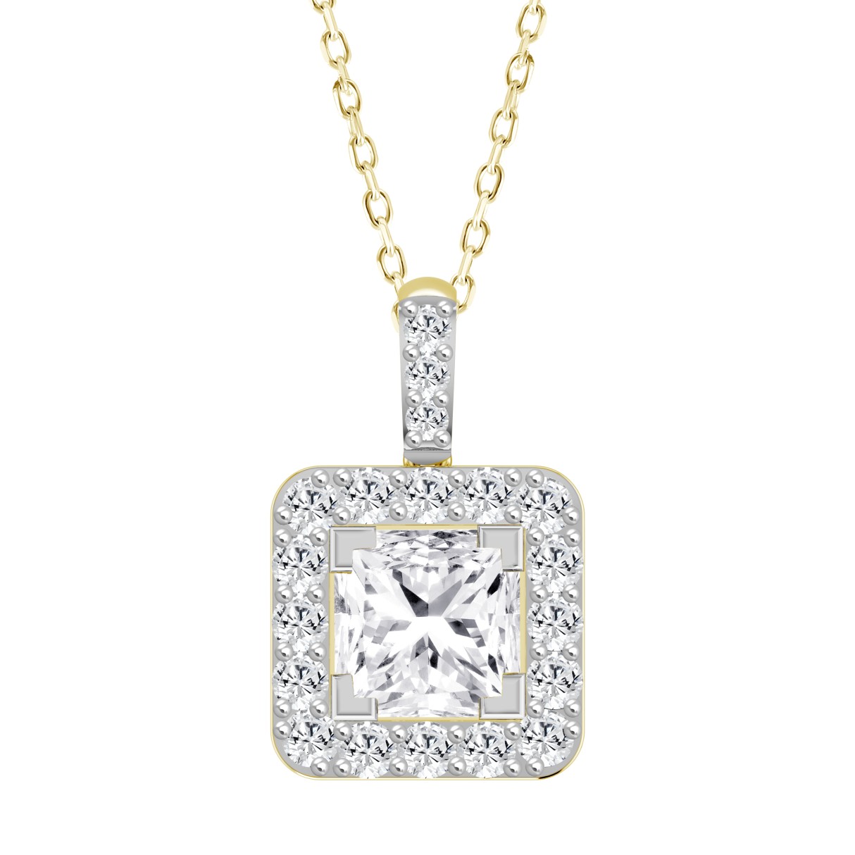 LADIES PENDANT 2 3/4CT ROUND/PRINCESS DIAMOND 14K YELLOW GOLD (CENTER STONE PRINCESS DIAMOND 2CT )
