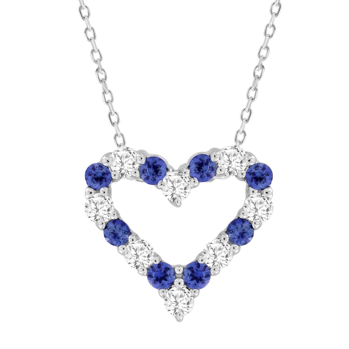 LADIES PENDANT 3/4CT ROUND/BLUE SAPHIRE DIAMOND 14K WHITE GOLD