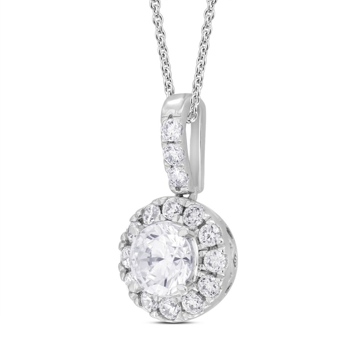 LADIES PENDANT WITH CHAIN 1 1/2CT ROUND DIAMOND 14K WHITE GOLD (CENTER STONE ROUND DIAMOND 1CT)