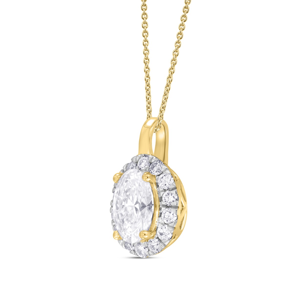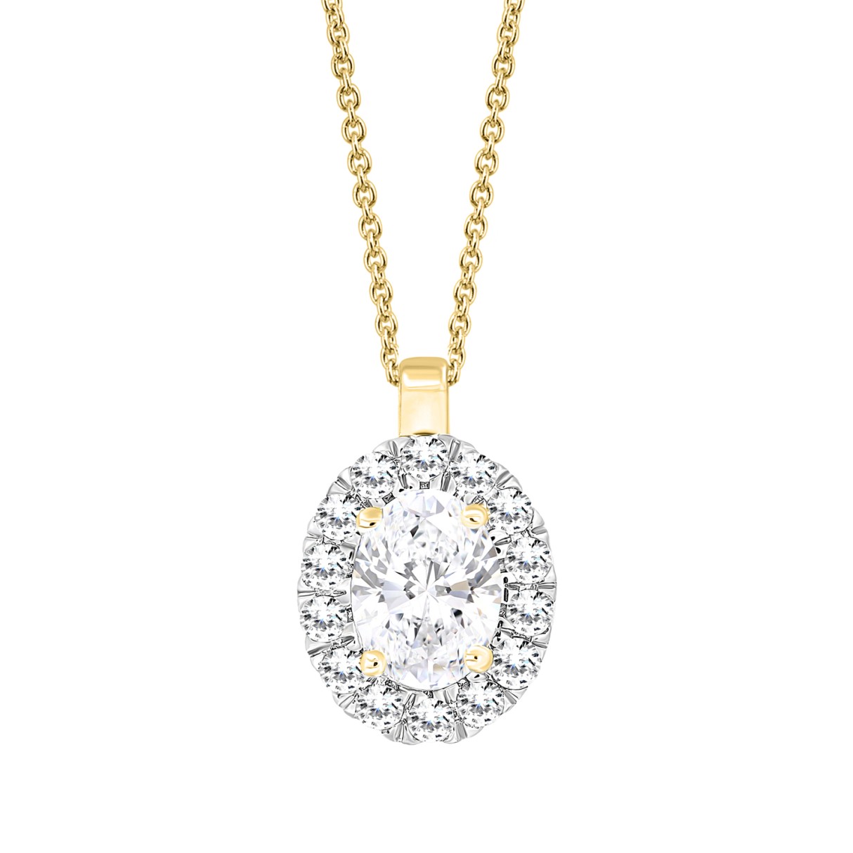 LADIES PENDANT WITH CHAIN 1 1/3CT ROUND/OVAL DIAMOND 14K YELLOW GOLD (CENTER STONE OVAL DIAMOND 1CT)
