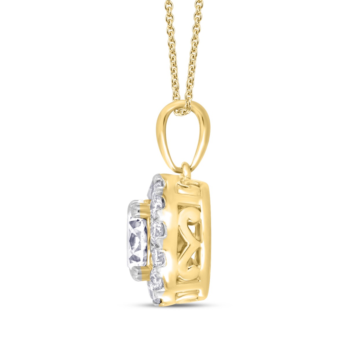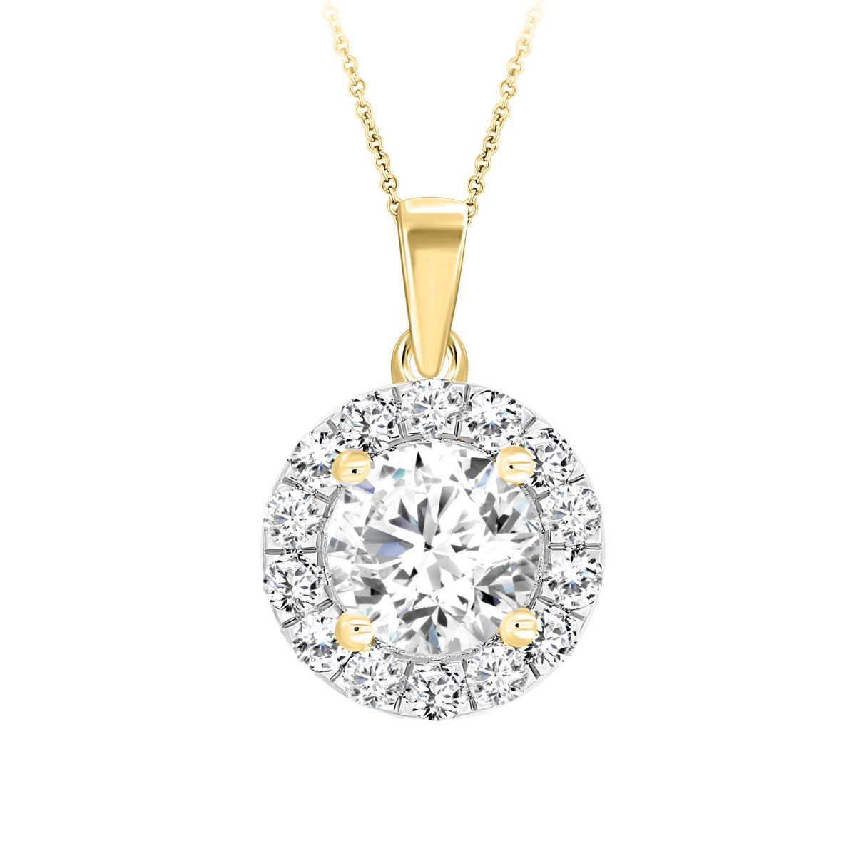 LADIES PENDANT WITH CHAIN 1CT ROUND DIAMOND 14K YELLOW GOLD (CENTER STONE ROUND DIAMOND 3/4CT )