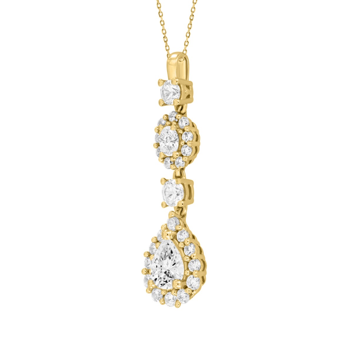 LADIES PENDANT WITH CHAIN 2CT PEAR/ROUND/OVAL DIAMOND 14K YELLOW GOLD
