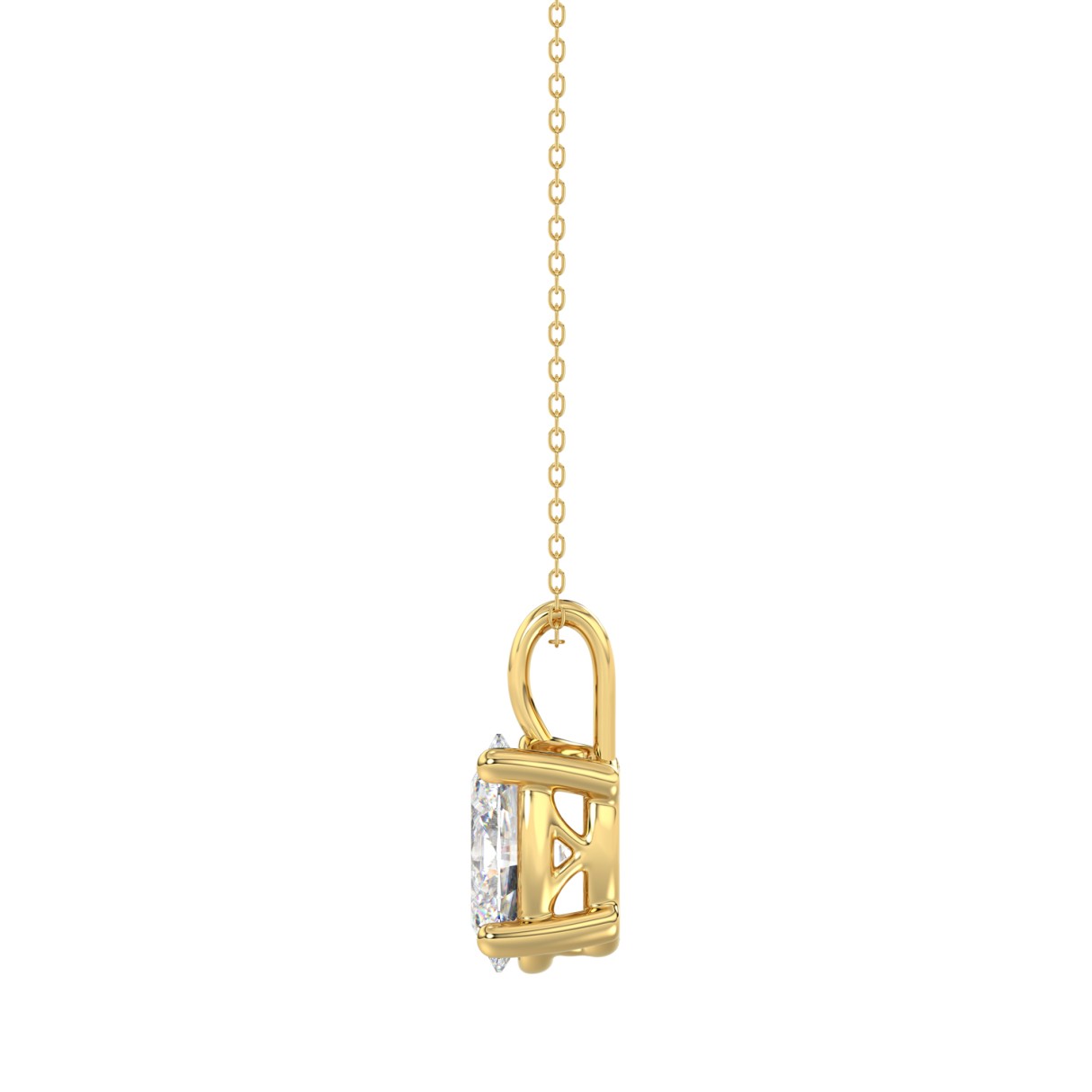 LADIES SOLITAIRE PENDANT WITH UNDER-PASS CHAIN 4CT ROUND DIAMOND 14K YELLOW GOLD