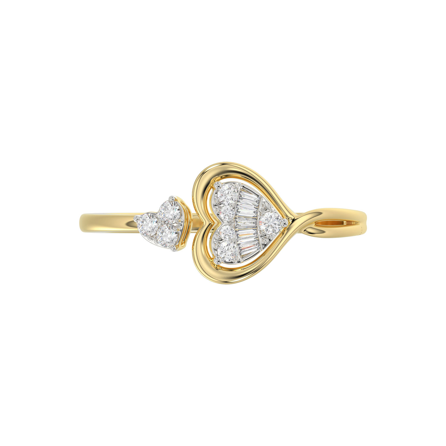 LADIES RING 0.15CT ROUND/BAGUETTE DIAMOND 10K YELLOW GOLD