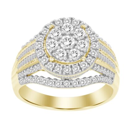 LADIES RING 0.20CT ROUND/BAGUETTE DIAMOND 10K YELLOW GOLD