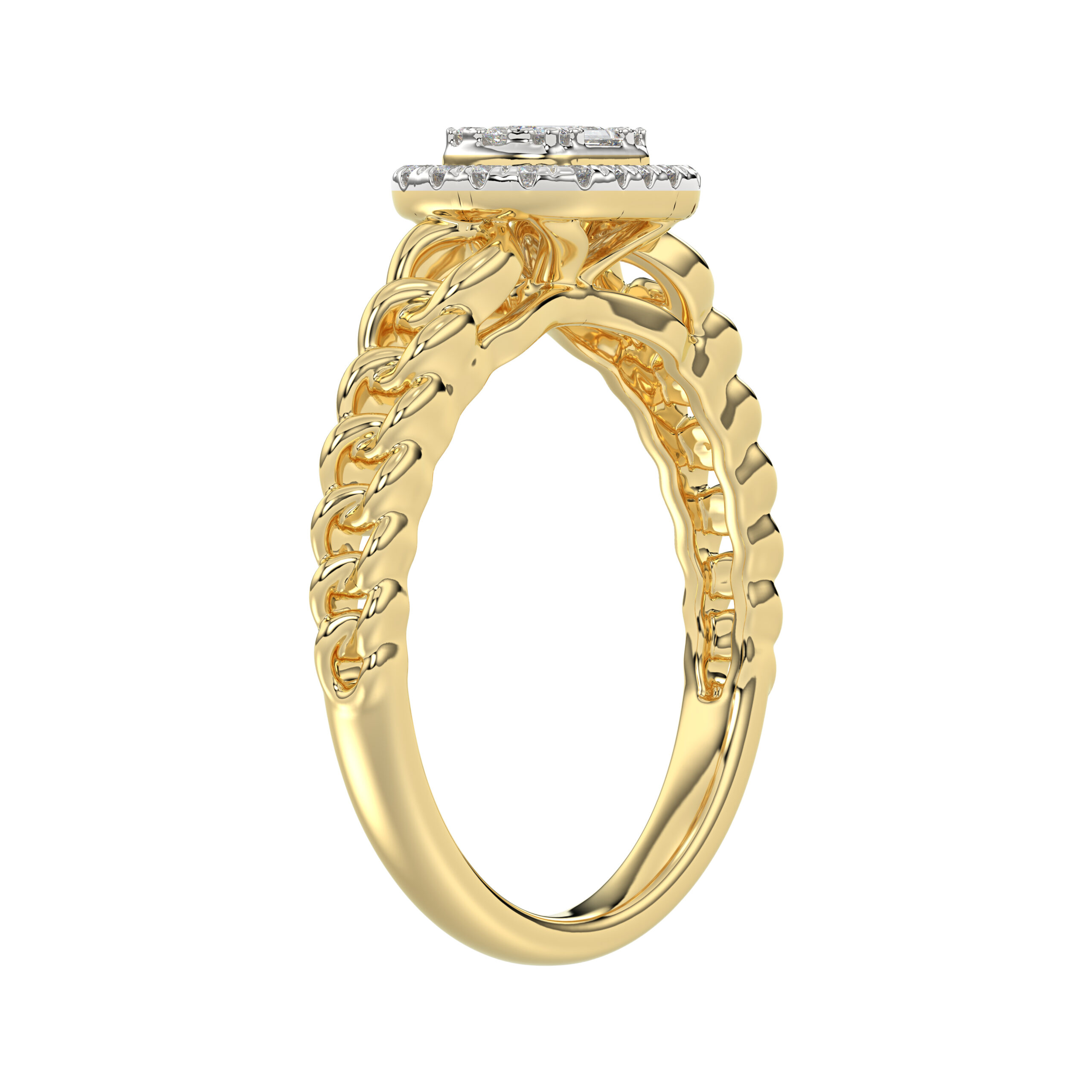 LADIES RING 0.20CT ROUND/BAGUETTE DIAMOND 10K YELLOW GOLD