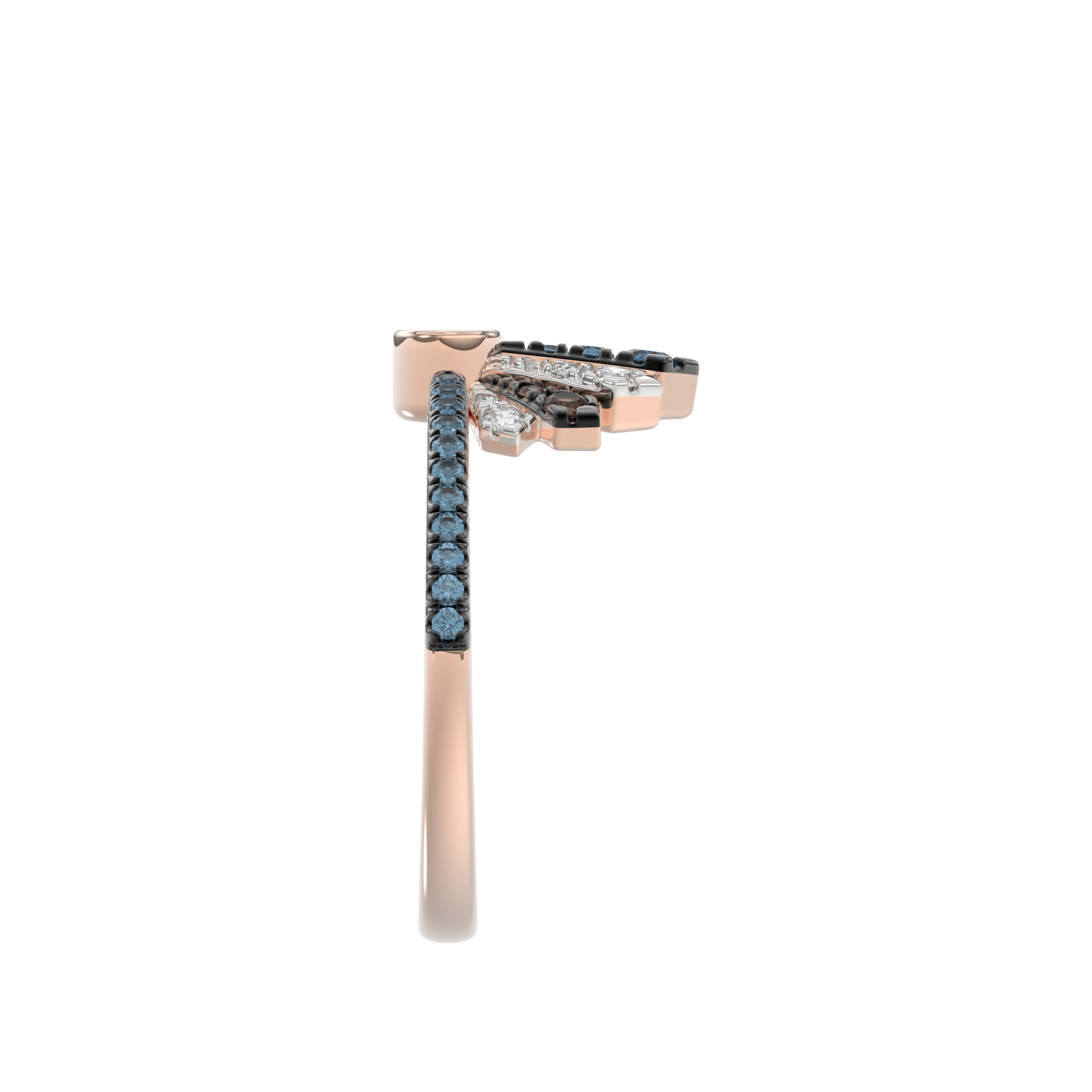 LADIES RING 0.50CT ROUND/ROUND BLUE/DARK BROWN DIAMOND 14K ROSE GOLD