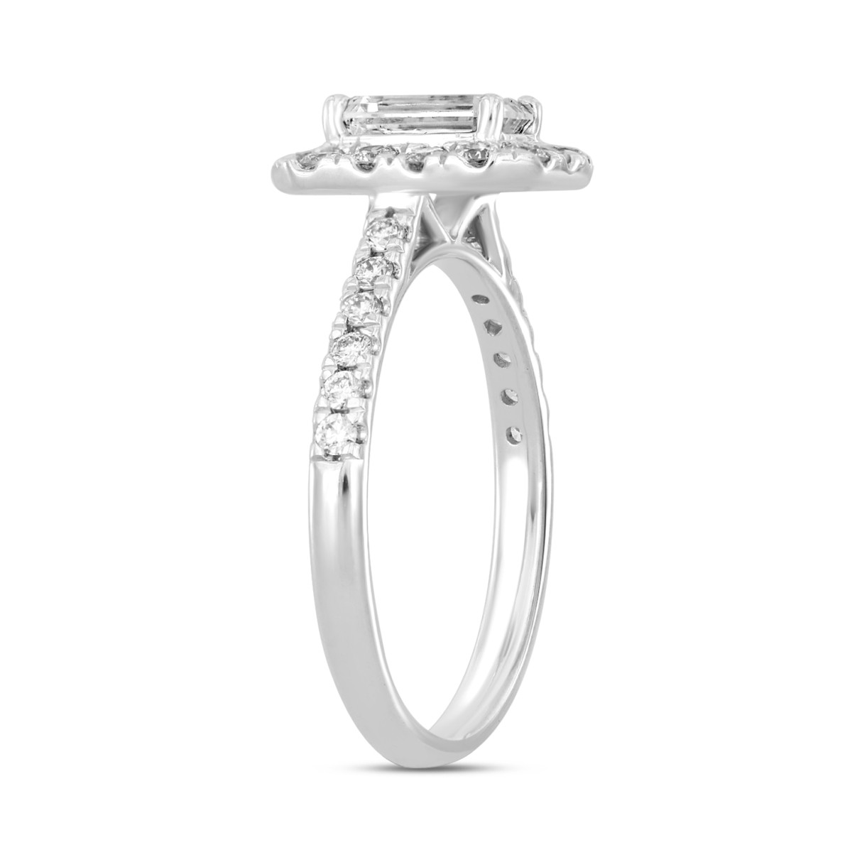 LADIES RING 1 1/2CT ROUND/EMERALD DIAMOND 14K WHITE GOLD (CENTER STONE EMERALD DIAMOND 1CT)