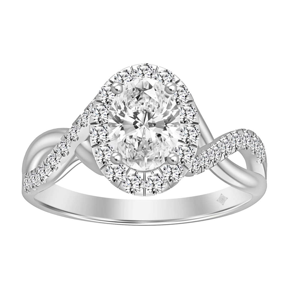 LADIES RING 1 1/2CT ROUND/OVAL DIAMOND 14K WHITE GOLD (CENTER STONE OVAL DIAMOND 1CT)
