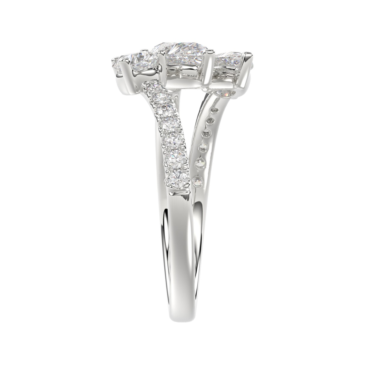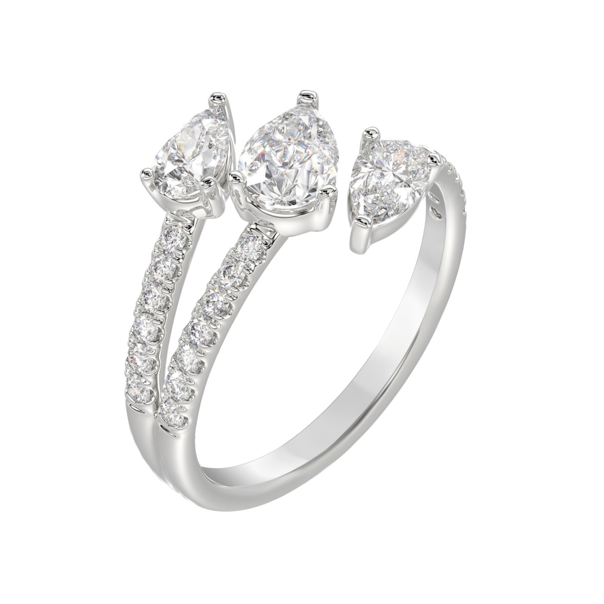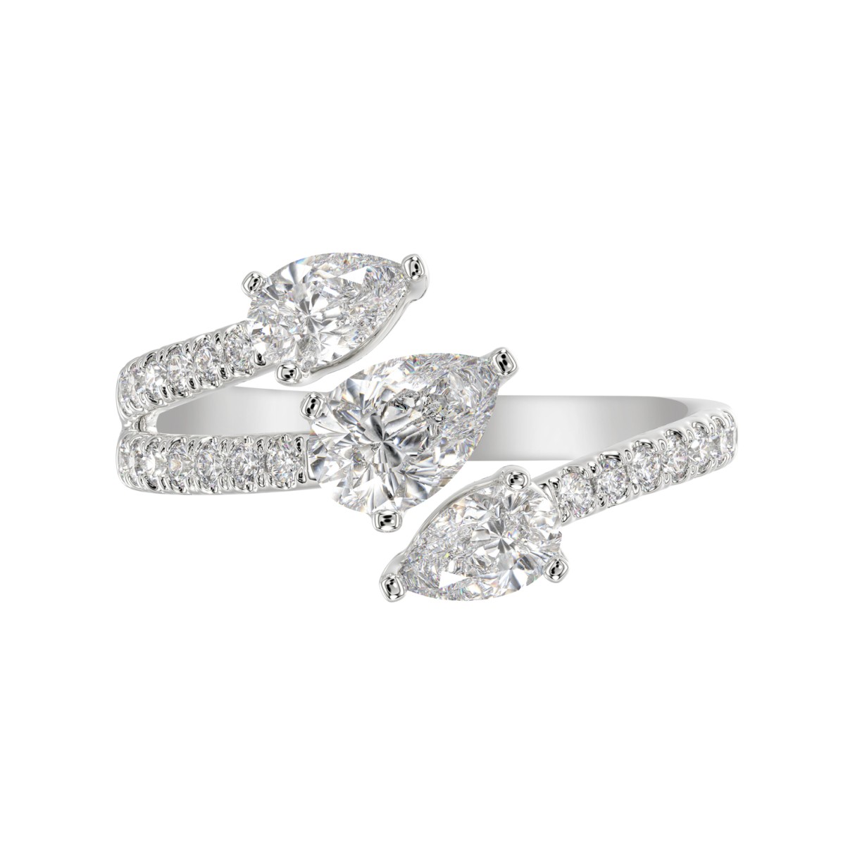 LADIES RING 1 1/4CT ROUND/PEAR DIAMOND 18K WHITE GOLD