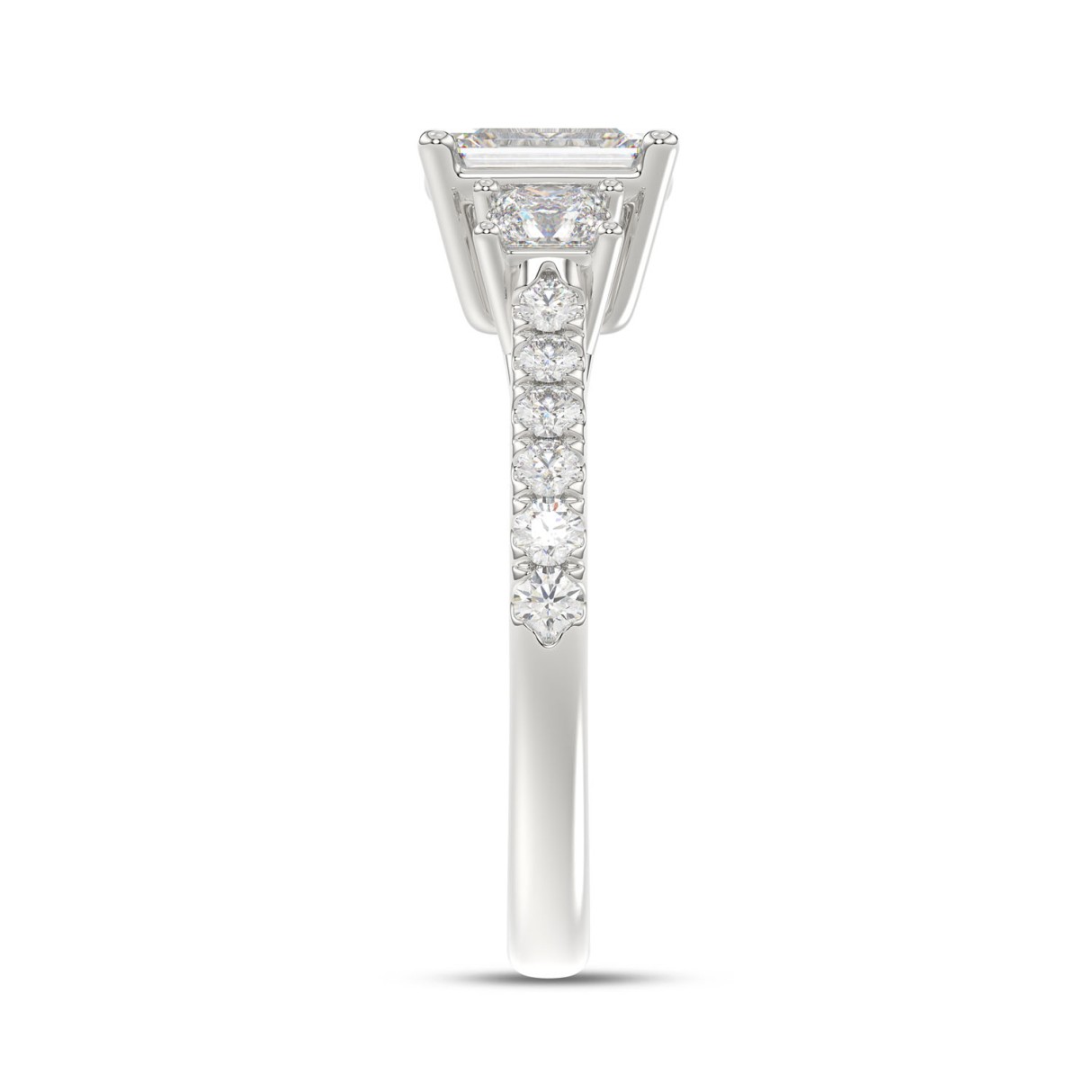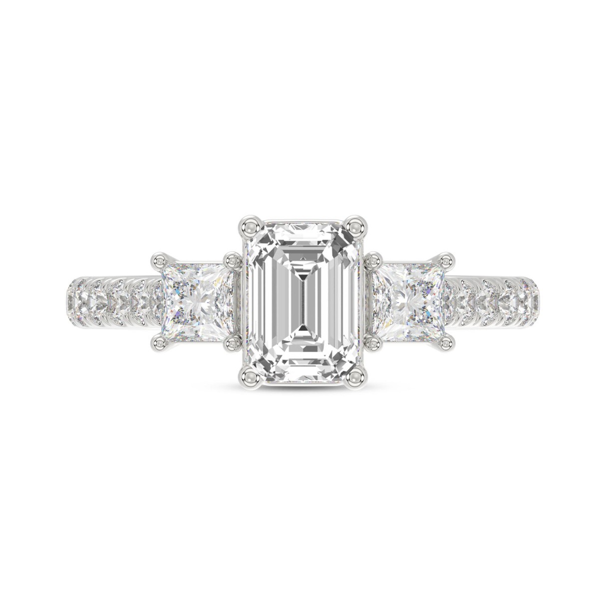 LADIES RING 1 7/8CT EMERALD/PRINCESS/ROUND DIAMOND 14K WHITE GOLD (CENTER STONE EMERALD DIAMOND 1CT )