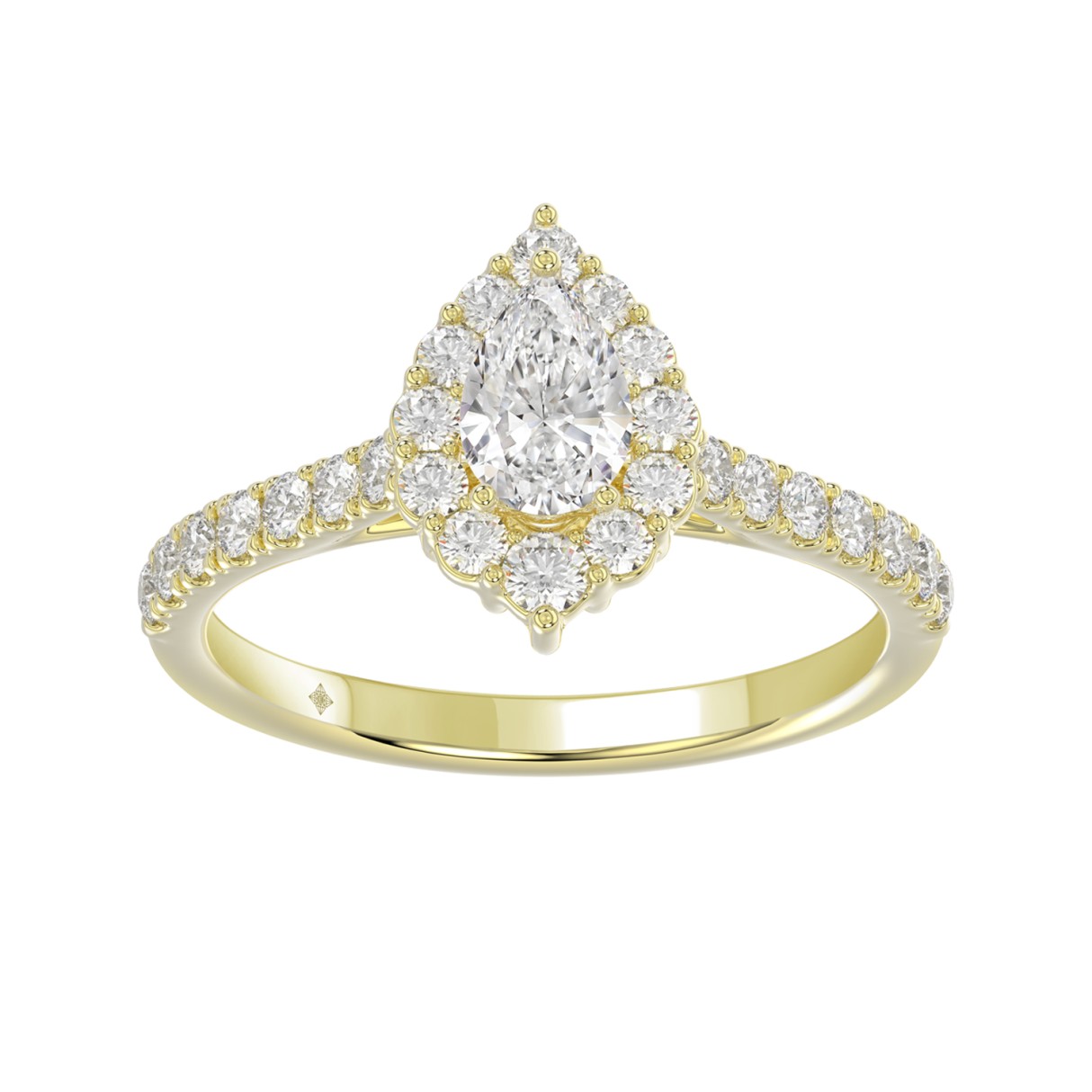 LADIES RING 1CT ROUND/PEAR DIAMOND 14K YELLOW GOLD (CENTER STONE PEAR DIAMOND 1/2CT)