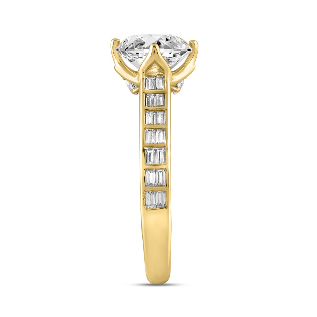 LADIES RING 2 1/2CT ROUND/BAGUETTE DIAMOND 14K YELLOW GOLD (CENTER STONE ROUND DIAMOND 2.00CT)
