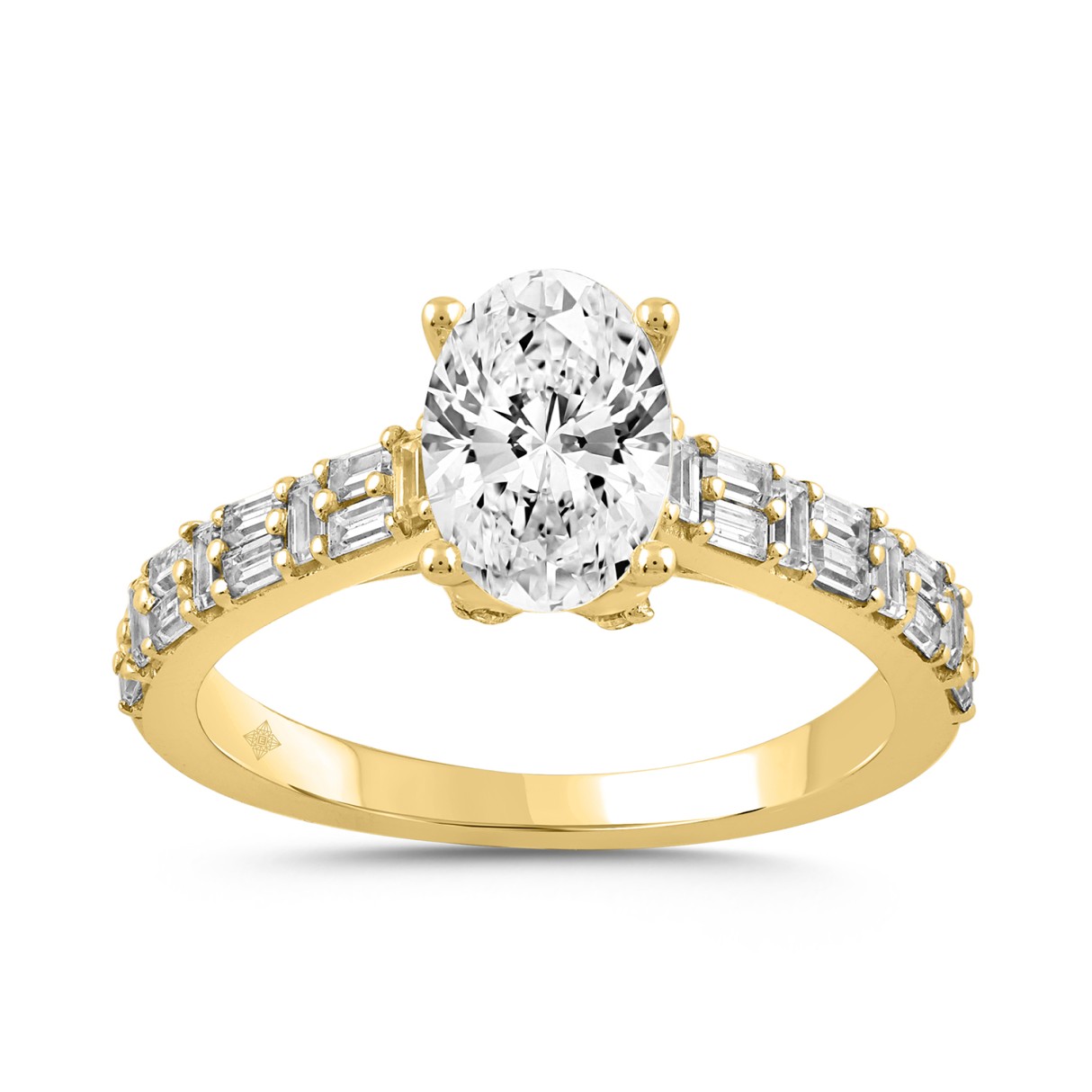 LADIES RING 2 1/2CT ROUND/BAGUETTE/OVAL DIAMOND 14K YELLOW GOLD (CENTER STONE OVAL DIAMOND 2.00CT)