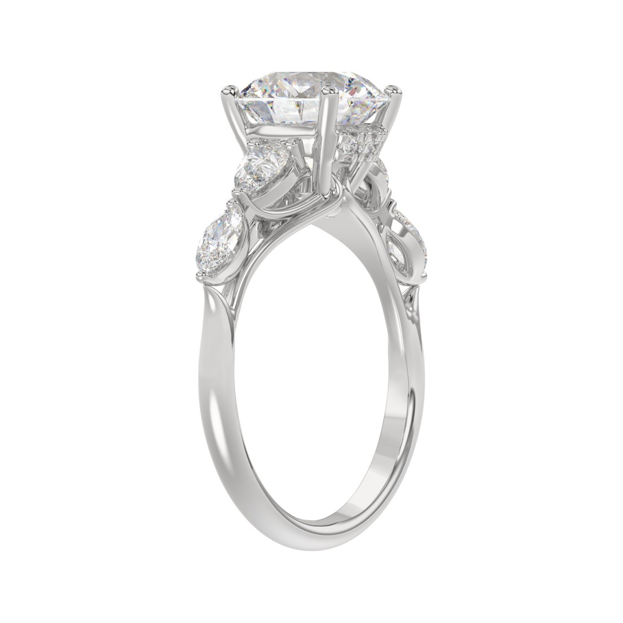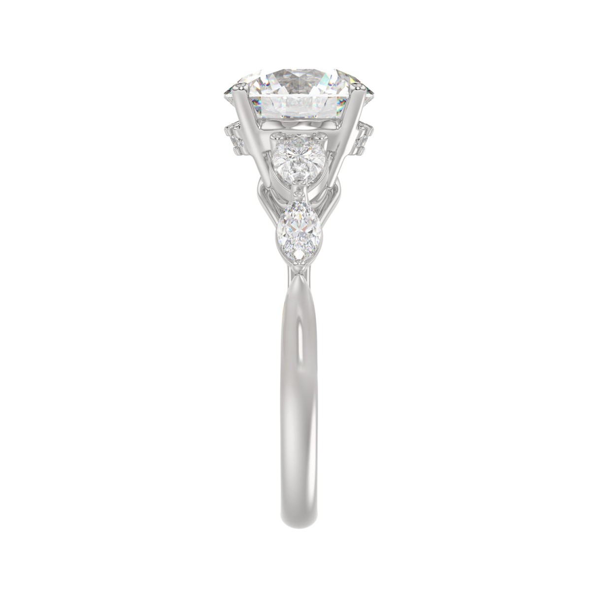 LADIES RING 2 1/2CT ROUND/PEAR/MARQUISE DIAMOND 14K WHITE GOLD (CENTER STONE ROUND DIAMOND 2.00CT)