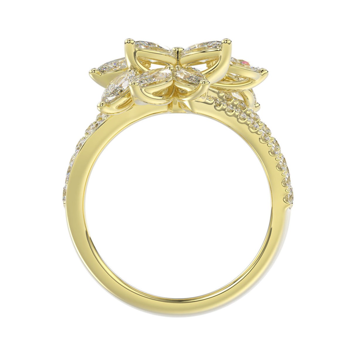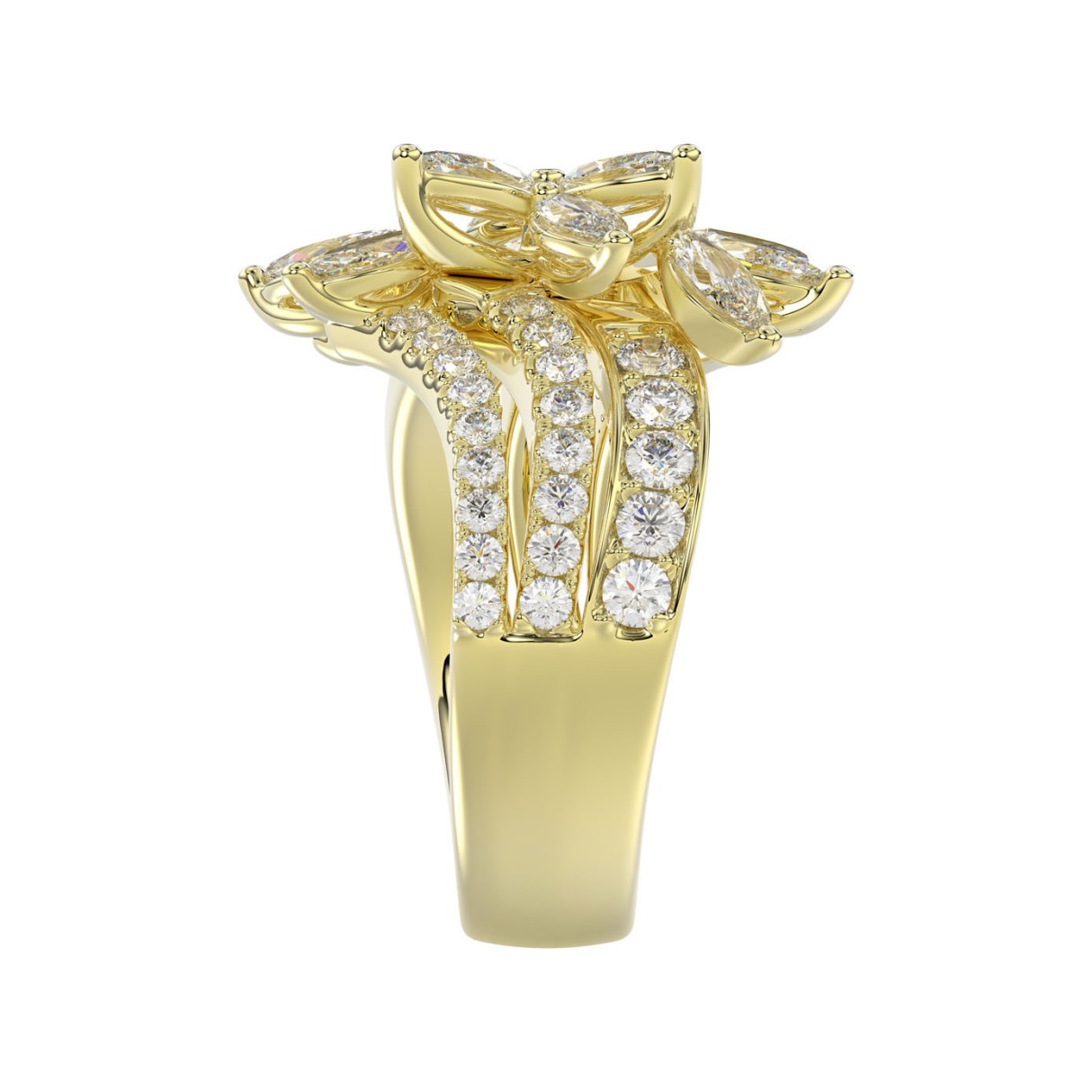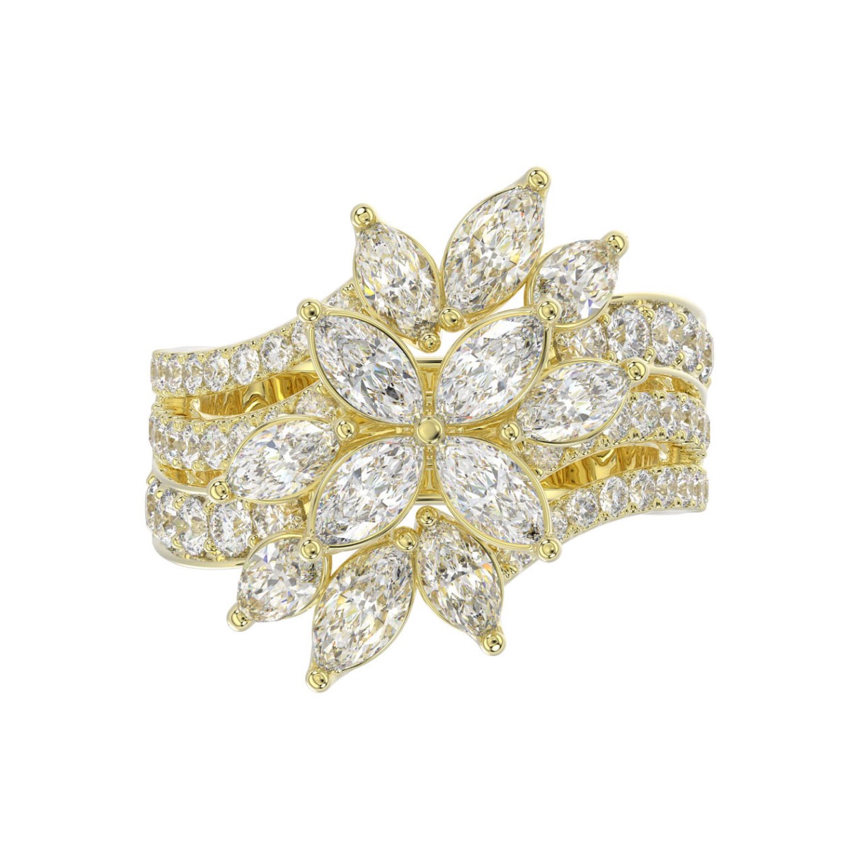 LADIES RING 2 1/4CT ROUND/MARQUISE DIAMOND 14K YELLOW GOLD