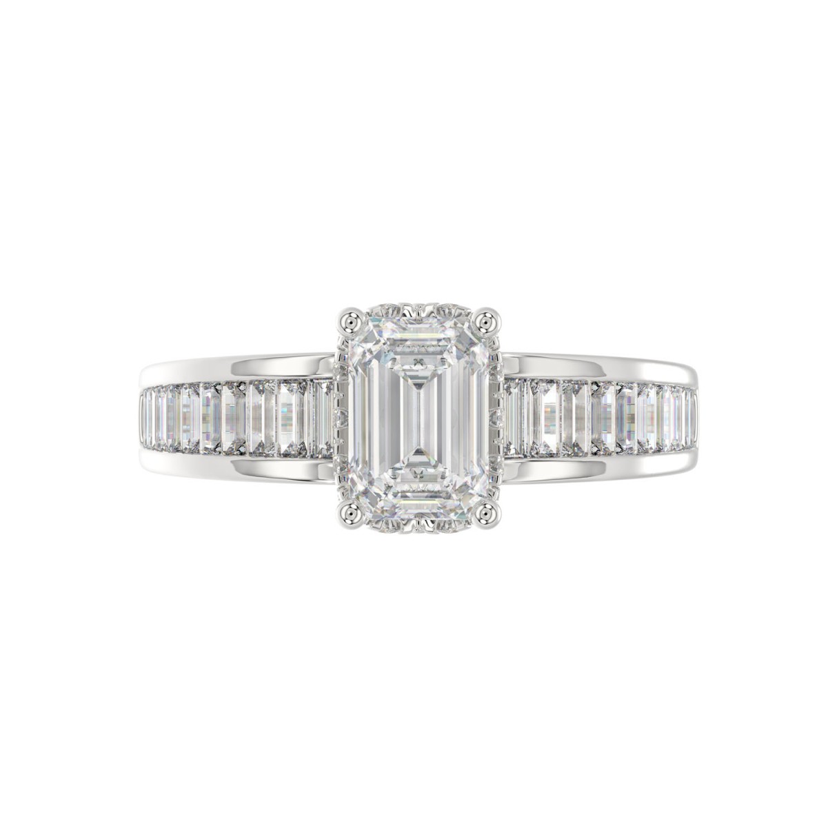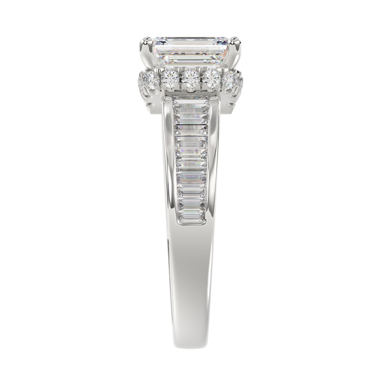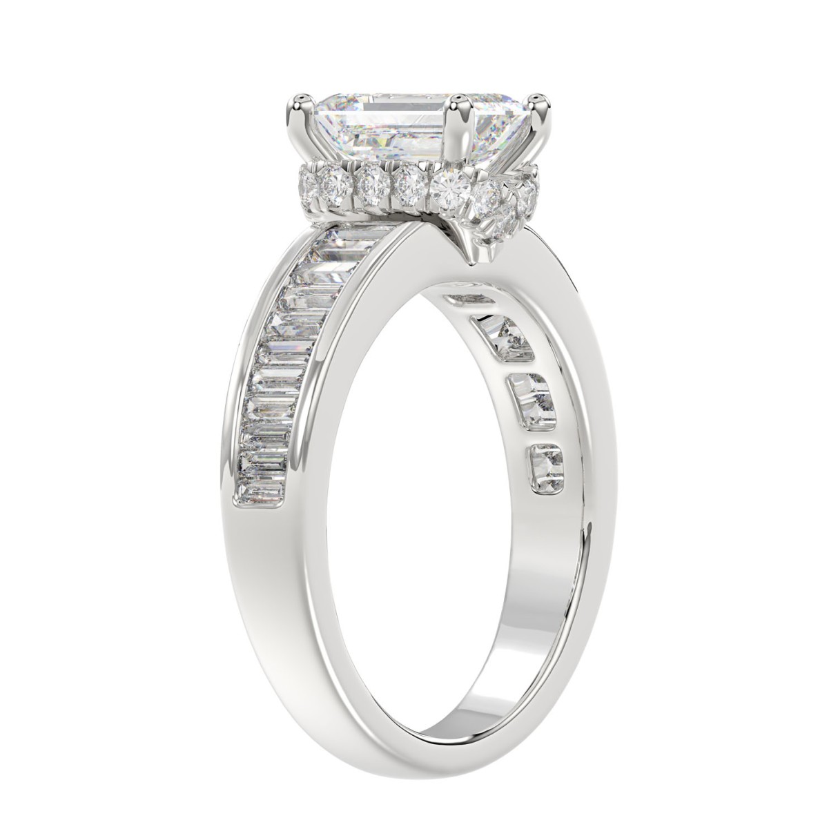 LADIES RING 2 3/4CTROUND/BAGUETTE/EMERALD DIAMOND 14K WHITE GOLD (CENTER STONE EMERALD DIAMOND 2.00CT )
