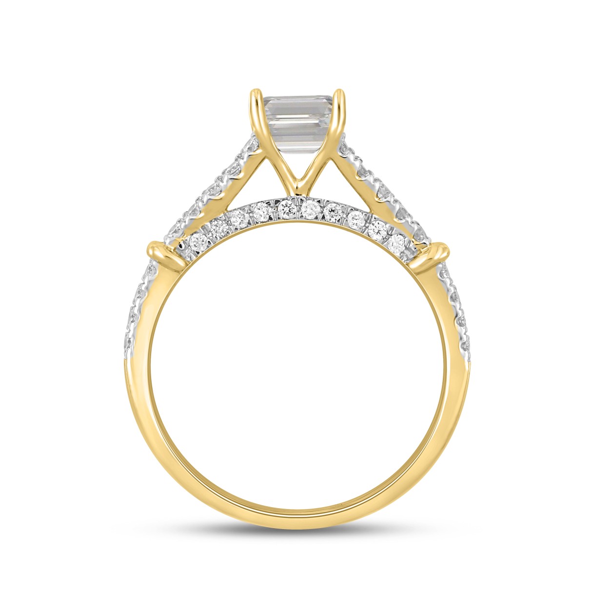 LADIES RING 2CT ROUND/EMERALD DIAMOND 14K YELLOW GOLD (CENTER STONE EMERALD DIAMOND 1 1/2CT )