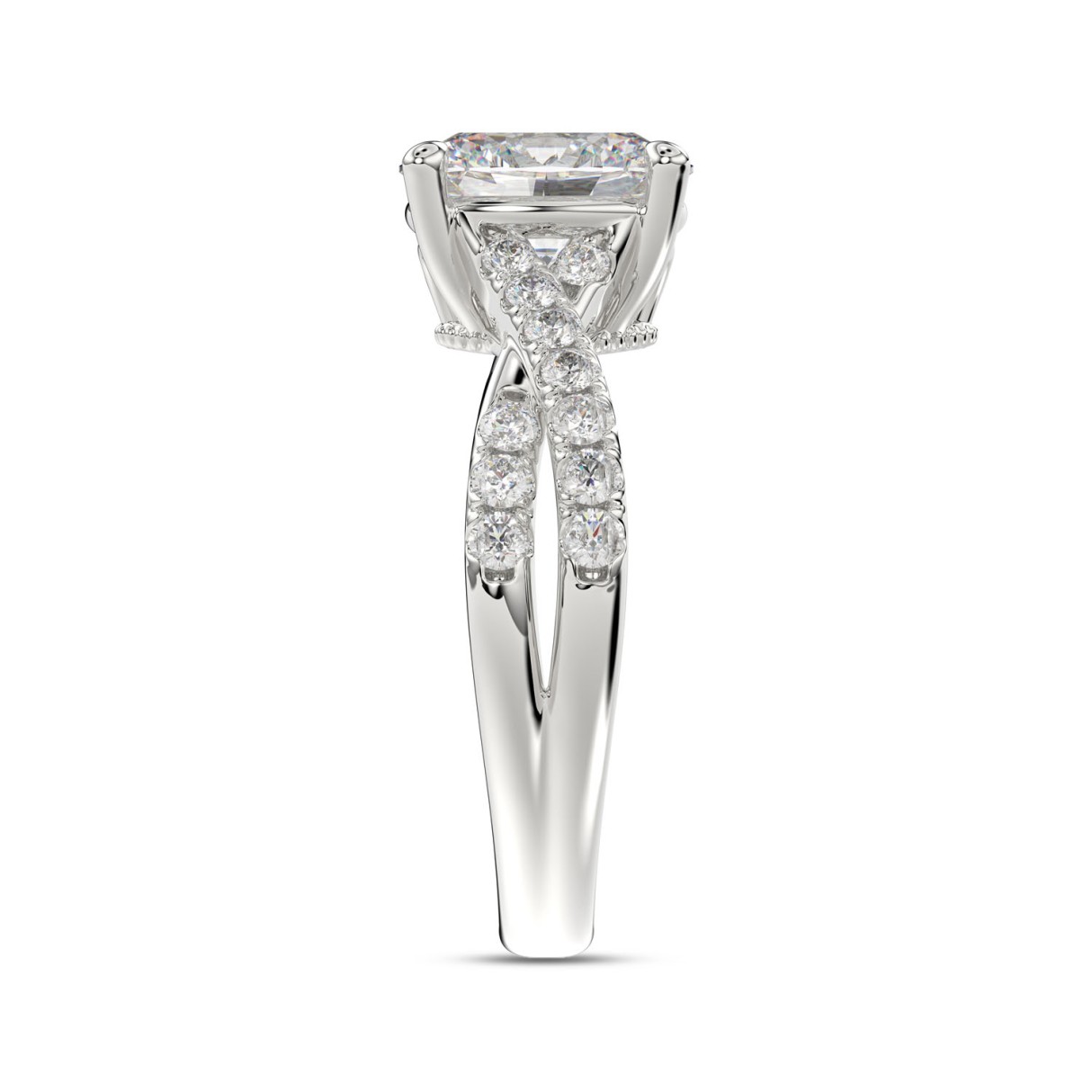 LADIES RING 5 1/4CT ROUND/CUSHION DIAMOND 14K WHITE GOLD (CENTER STONE CUSHION DIAMOND 4CT )