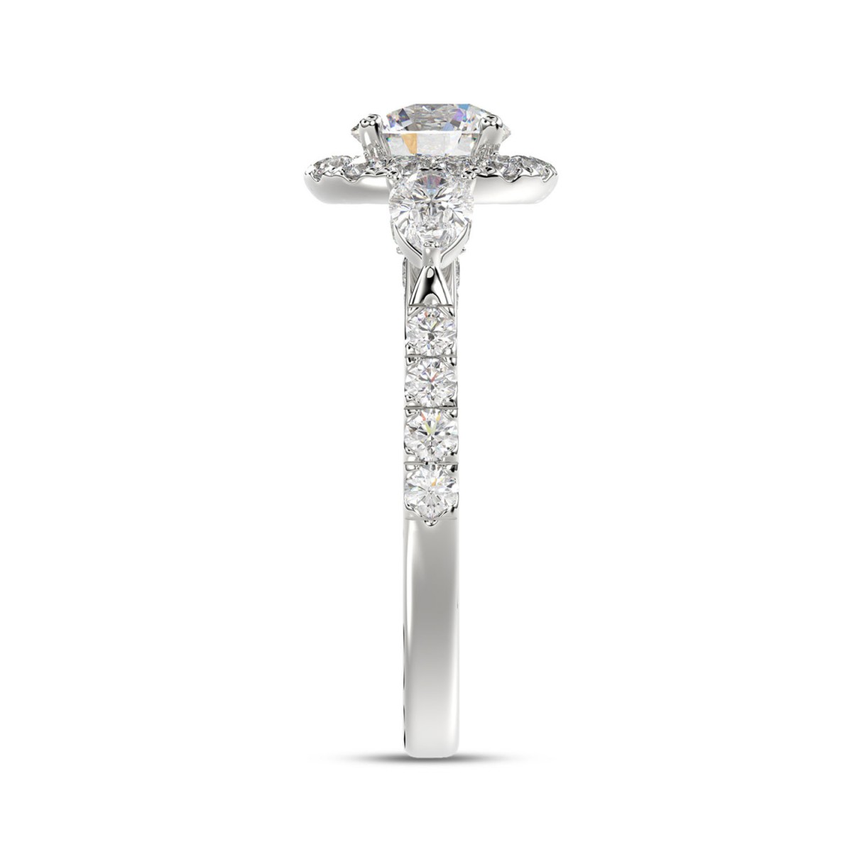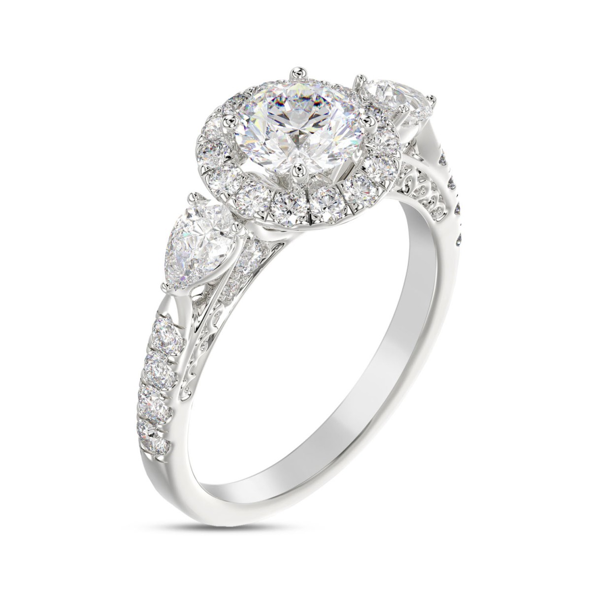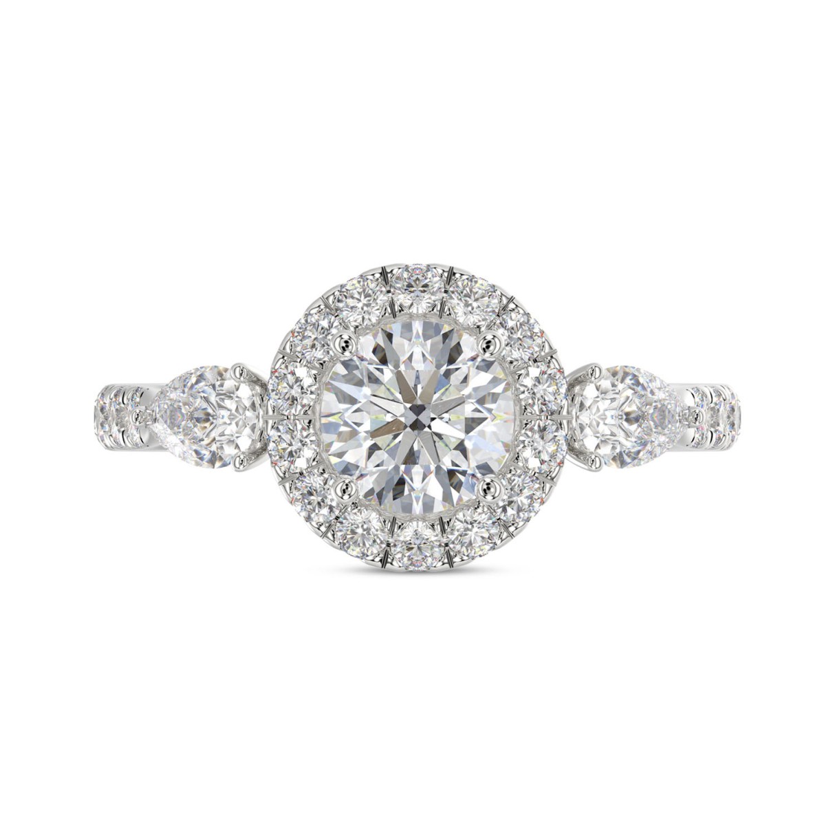 LADIES RING 2CT ROUND/PEAR DIAMOND 14K WHITE GOLD (CENTER STONE ROUND DIAMOND 1CT )