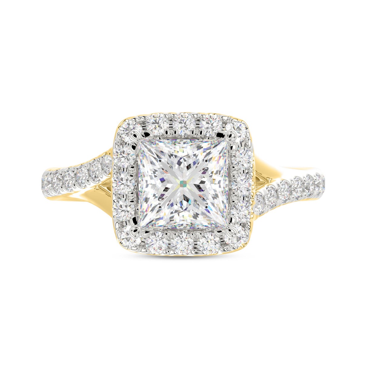 LADIES RING 2CT ROUND/PRINCESS DIAMOND 14K YELLOW GOLD (CENTER STONE PRINCESS DIAMOND 1 1/2CT )