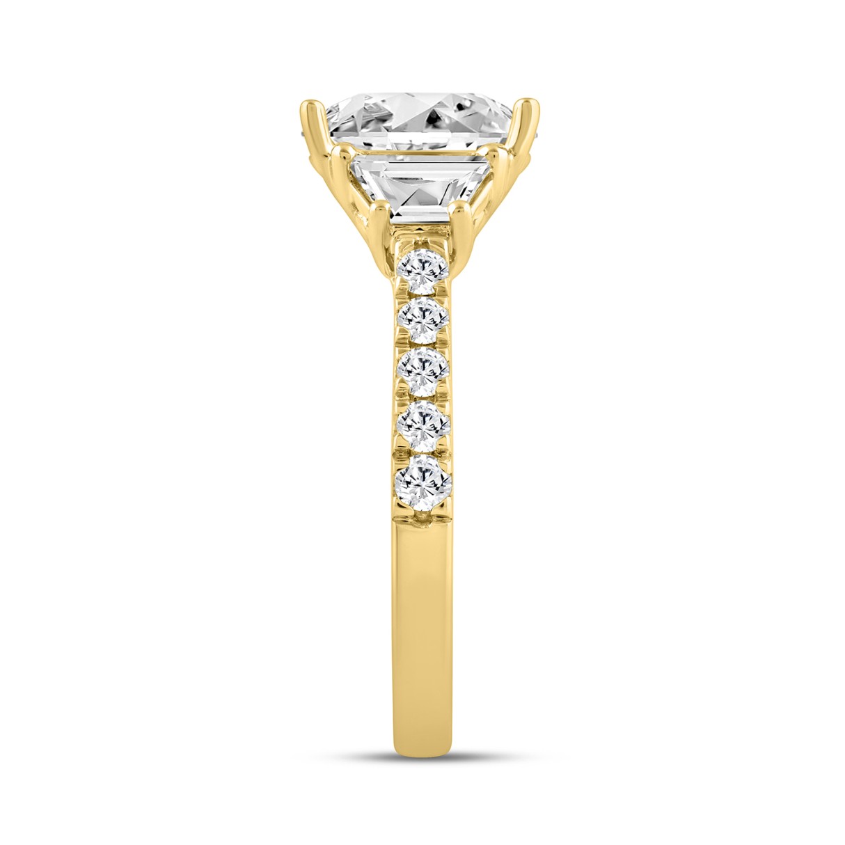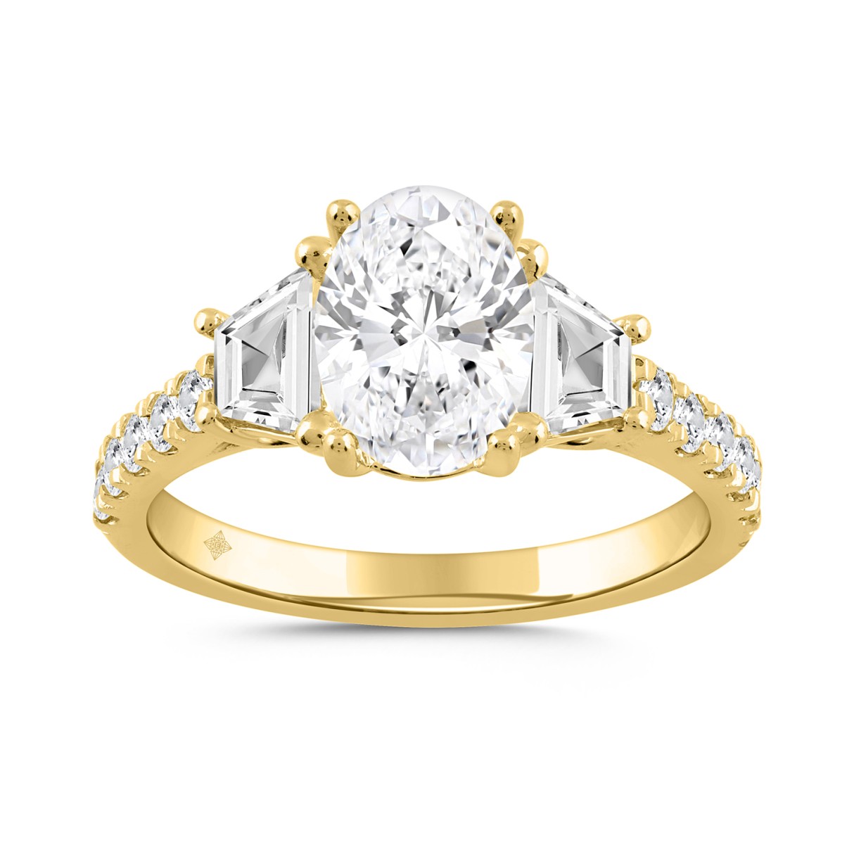 LADIES RING 3.00CT ROUND/OVAL/TRAPEZOID DIAMOND 14K YELLOW GOLD (CENTER STONE OVAL DIAMOND 2.00CT)