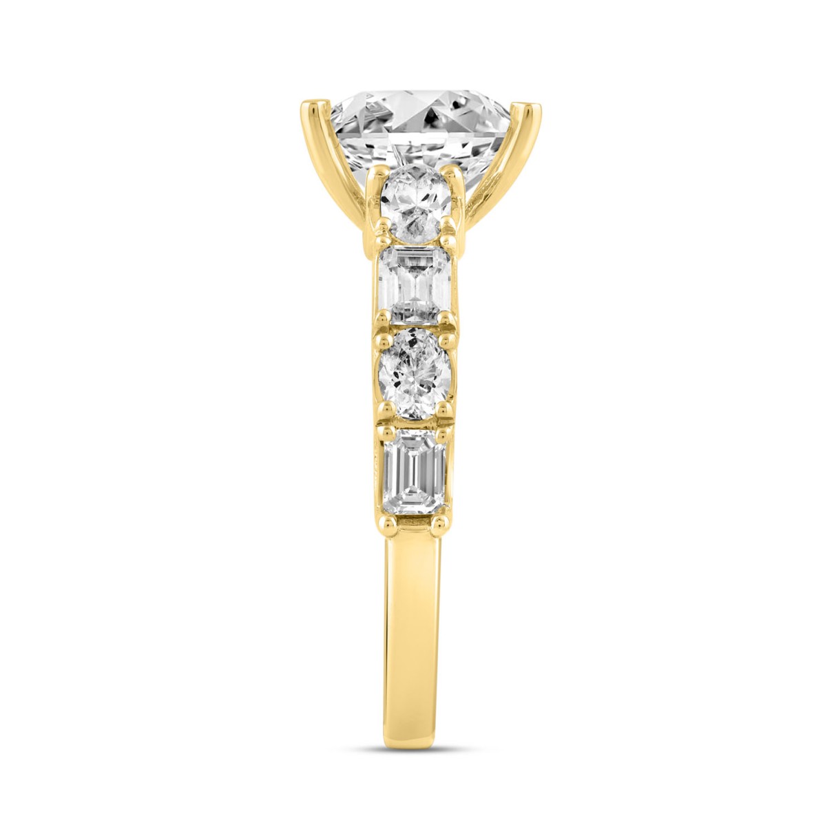 LADIES RING 3 1/2CT ROUND/EMERALD/OVAL DIAMOND 14K YELLOW GOLD (CENTER STONE OVAL DIAMOND 2.00CT)