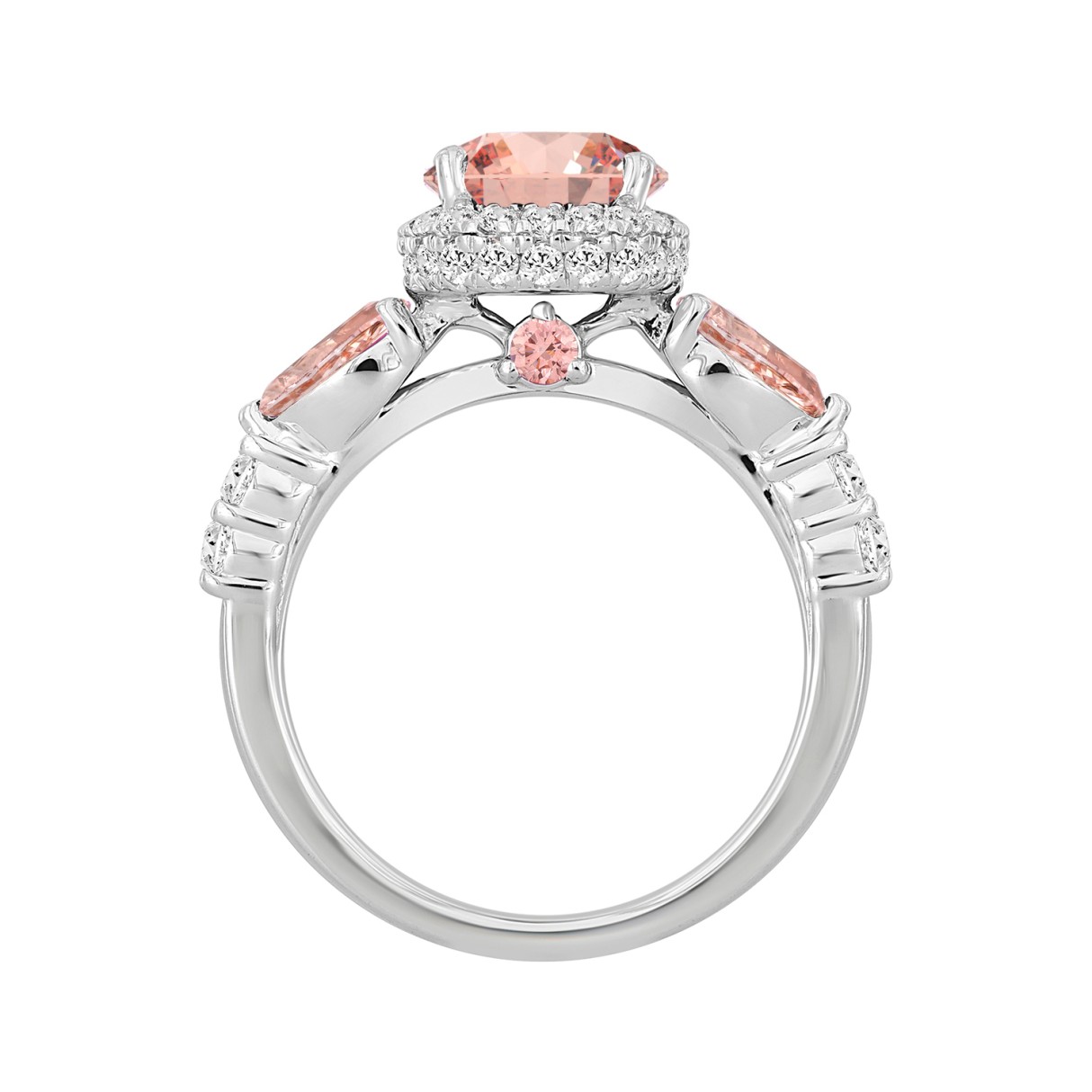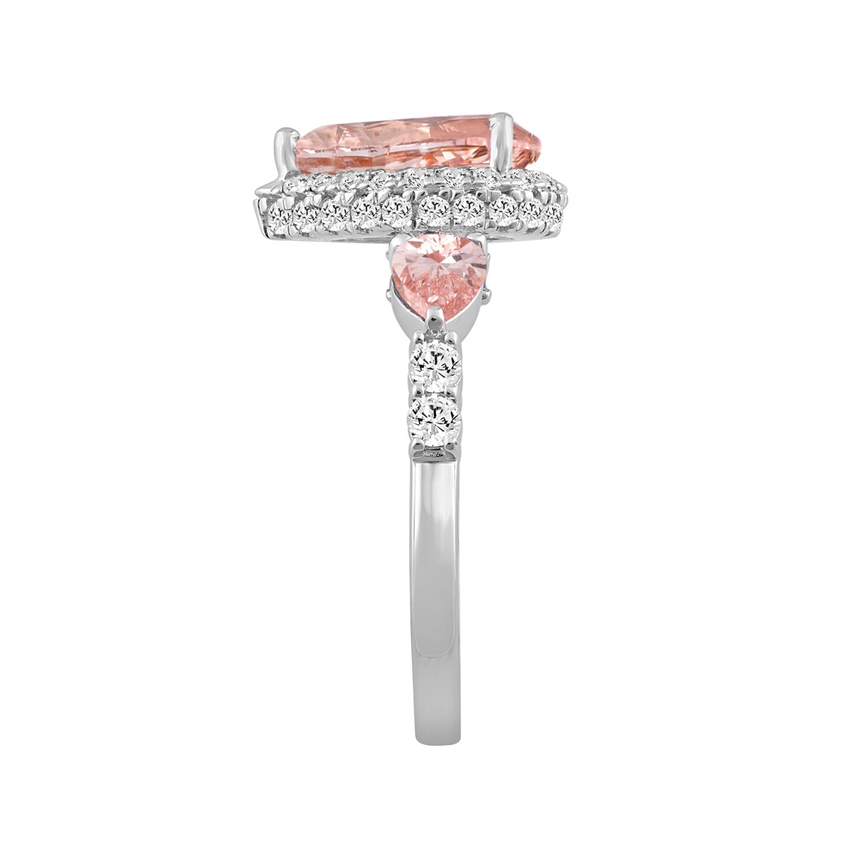 LADIES RING 3 3/4CT ROUND/PINK PEAR DIAMOND 14K WHITE GOLD (CENTER STONE PINK PEAR DIAMOND 2CT )