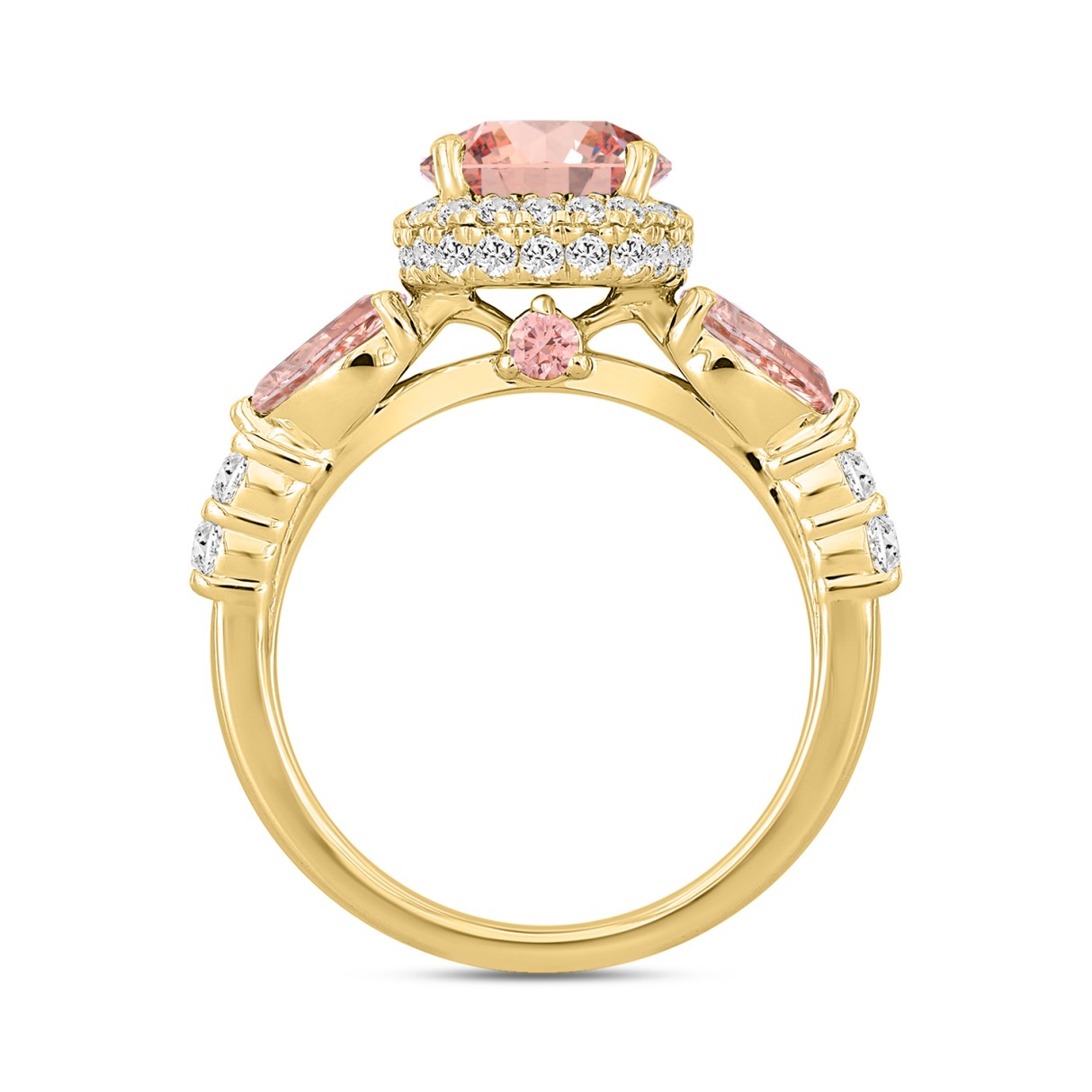 LADIES RING 3 3/4CT ROUND/PINK PEAR DIAMOND 14K YELLOW GOLD (CENTER STONE PINK PEAR DIAMOND 2CT )