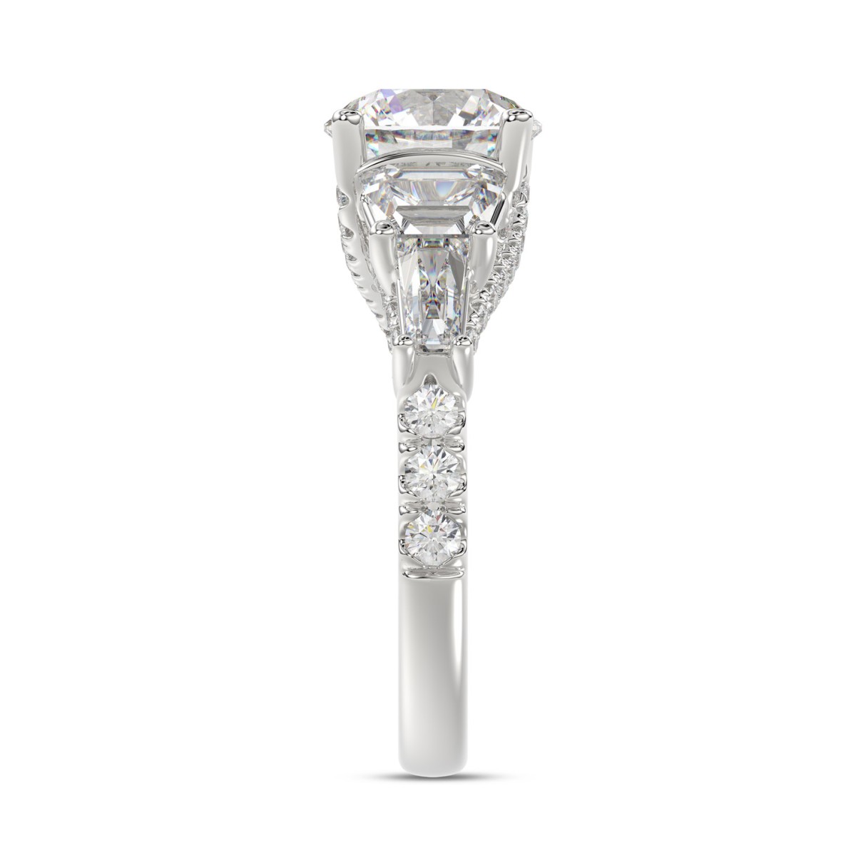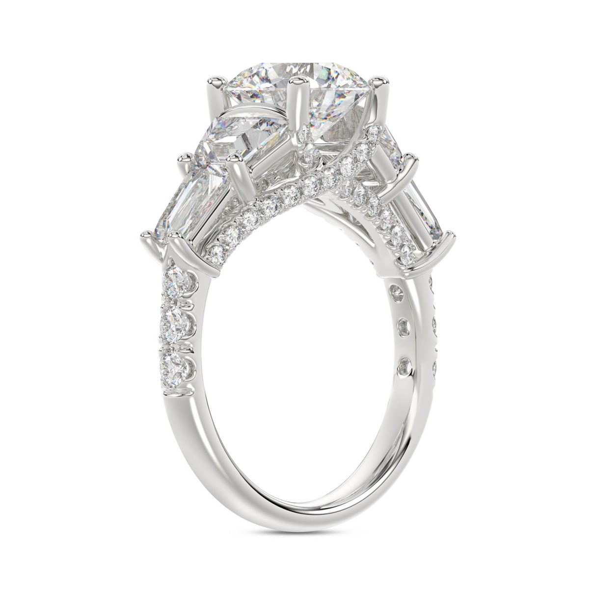 LADIES RING 3 3/4CT ROUND/TRAPEZOID/BAGUETTE DIAMOND 14K WHITE GOLD (CENTER STONE ROUND DIAMOND 2CT )
