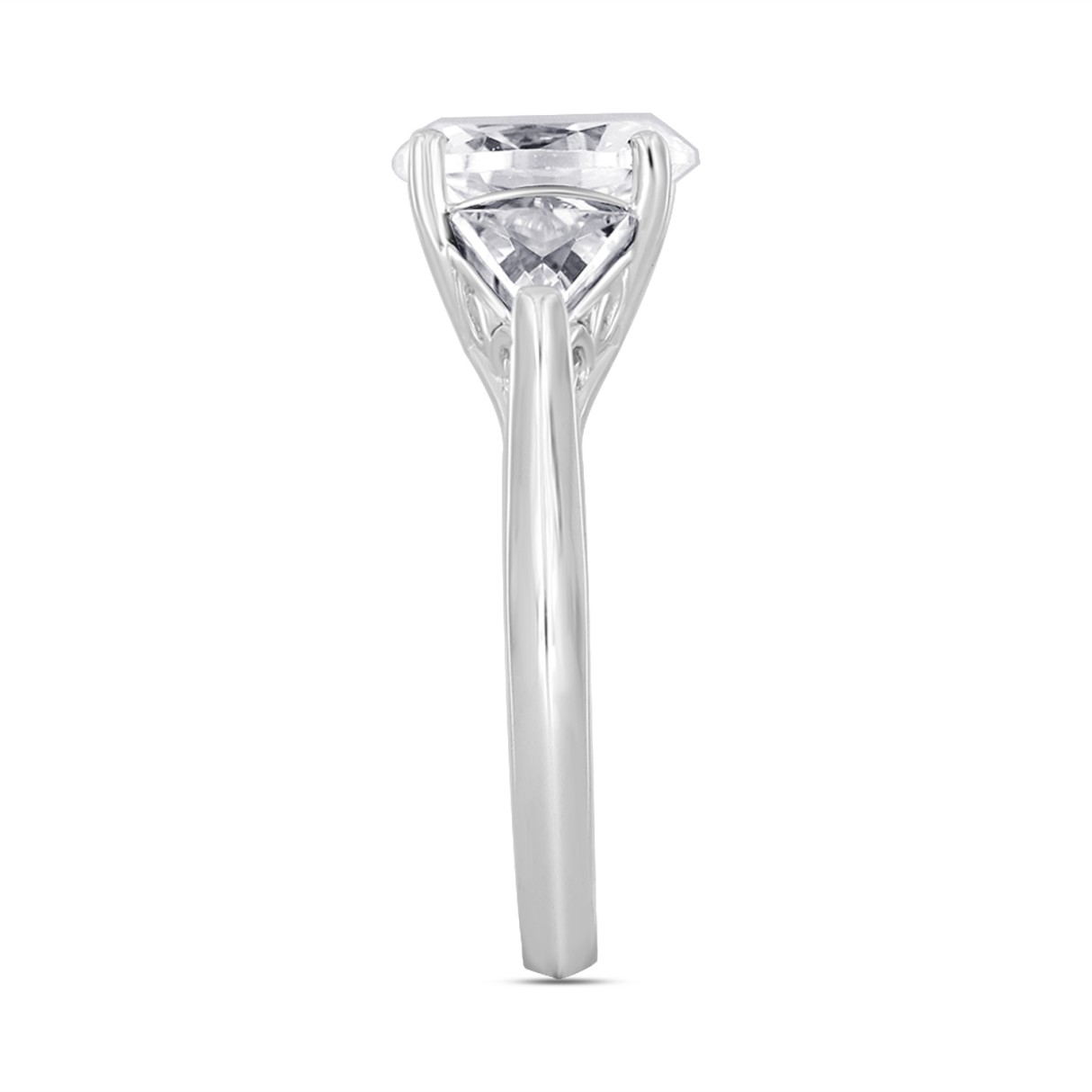 LADIES RING 3CT OVAL/TRILLION DIAMOND 14K WHITE GOLD (CENTER STONE OVAL DIAMOND 2CT )