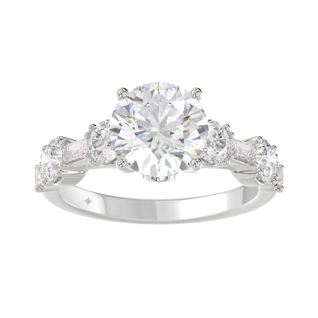 LADIES RING 3CT ROUND/BAGUETTE DIAMOND 14K WHITE GOLD (CENTER STONE ROUND DIAMOND 2.00CT)